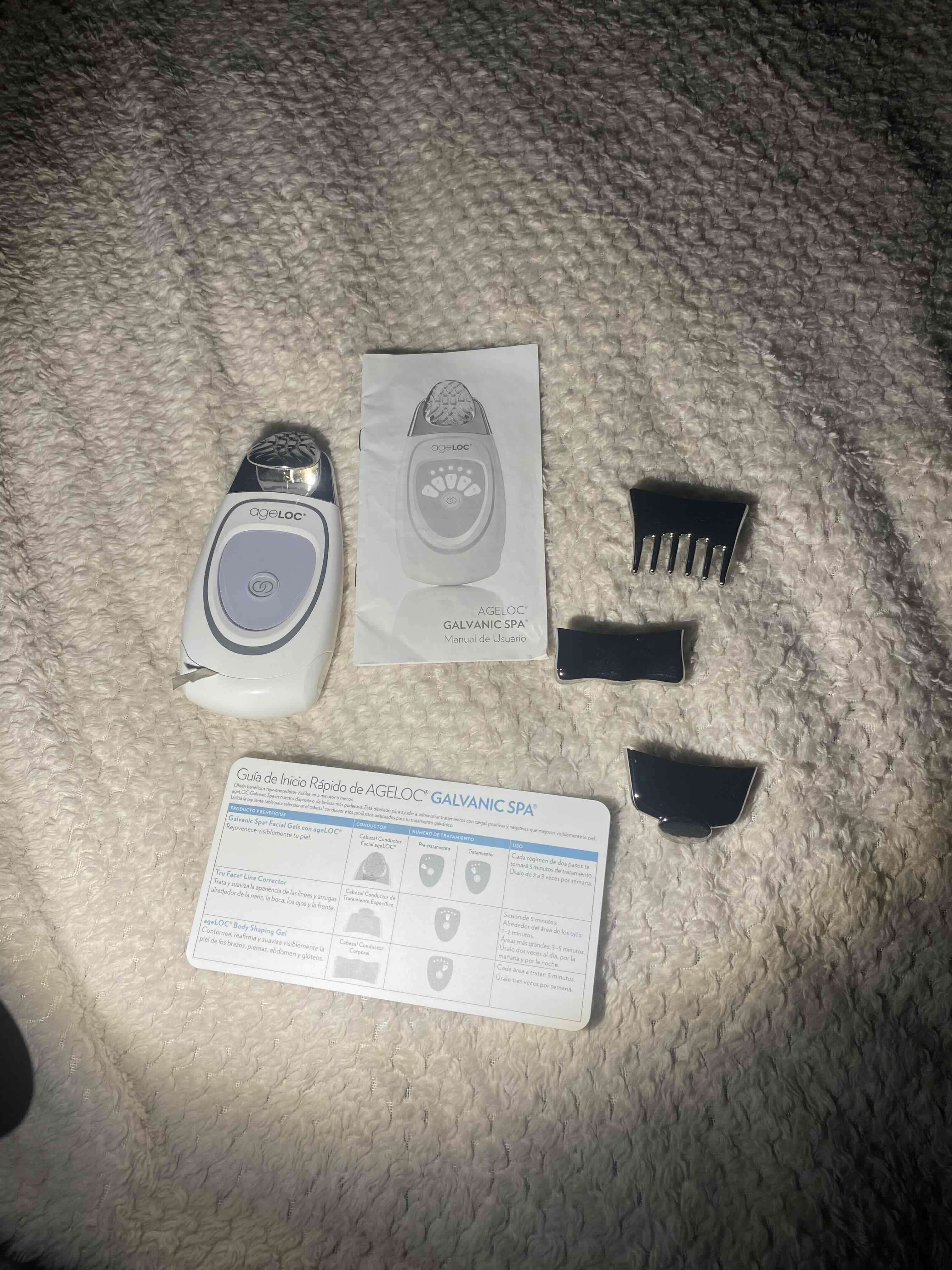 Aparato AgeLOC Galvanic Spa con accesorios. Ideal para el cuidado facial y corporal. En buen estado, con manual incluido.