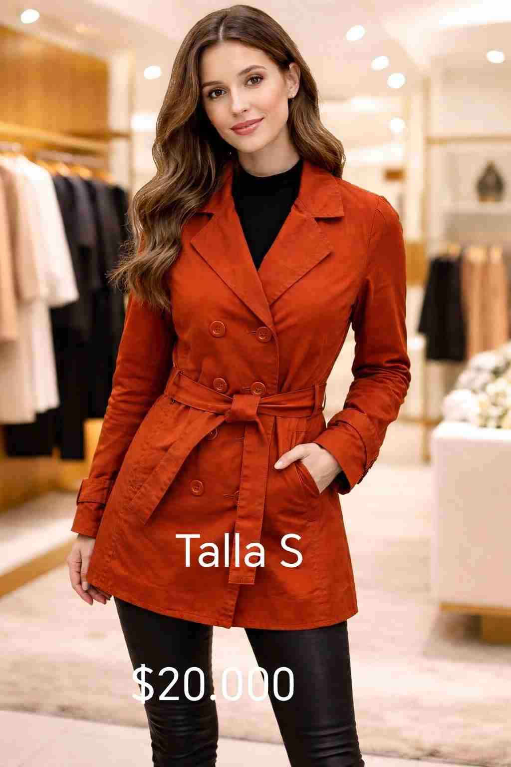 Elegante abrigo rojo, perfecto para el otoño. En buen estado y estiloso. Ideal para salidas casuales.