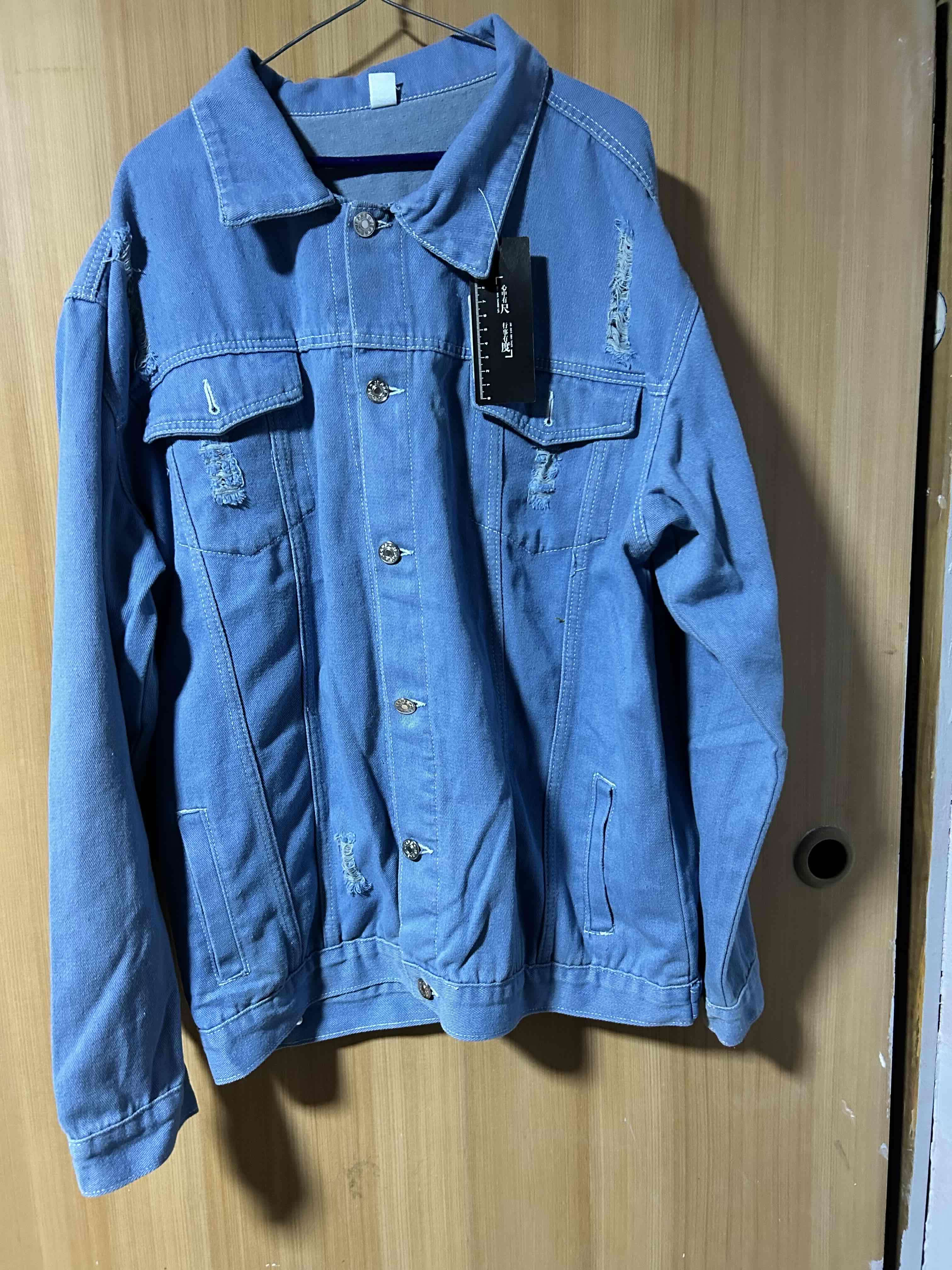 Chaqueta de mezclilla azul con detalles desgastados. Perfecta para el otoño, en excelente estado. Talla 3 XL