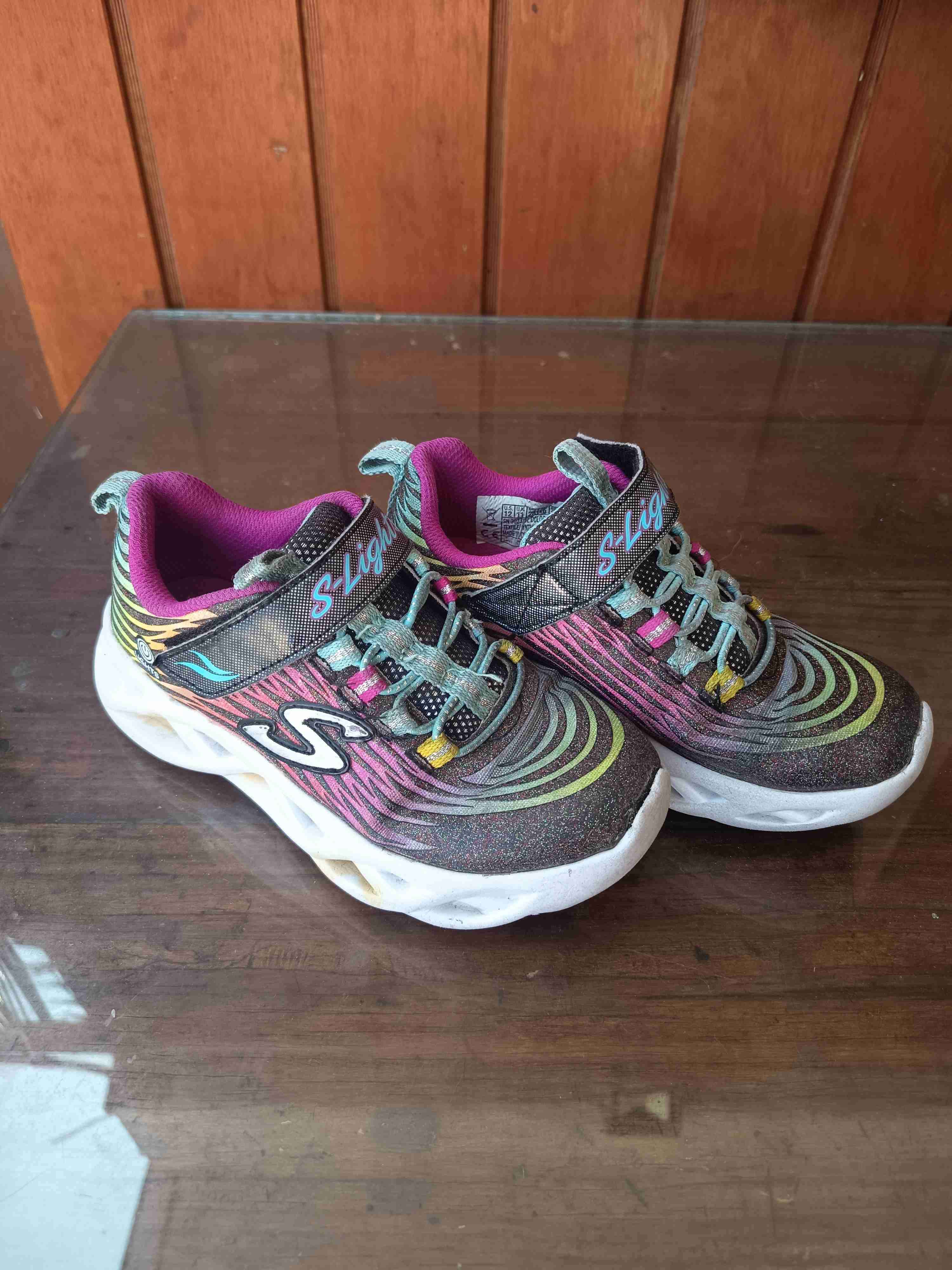 Zapatillas Skechers para niña número 28 con luces, diseño colorido y divertido. En buen estado, ideales para usar a diario.