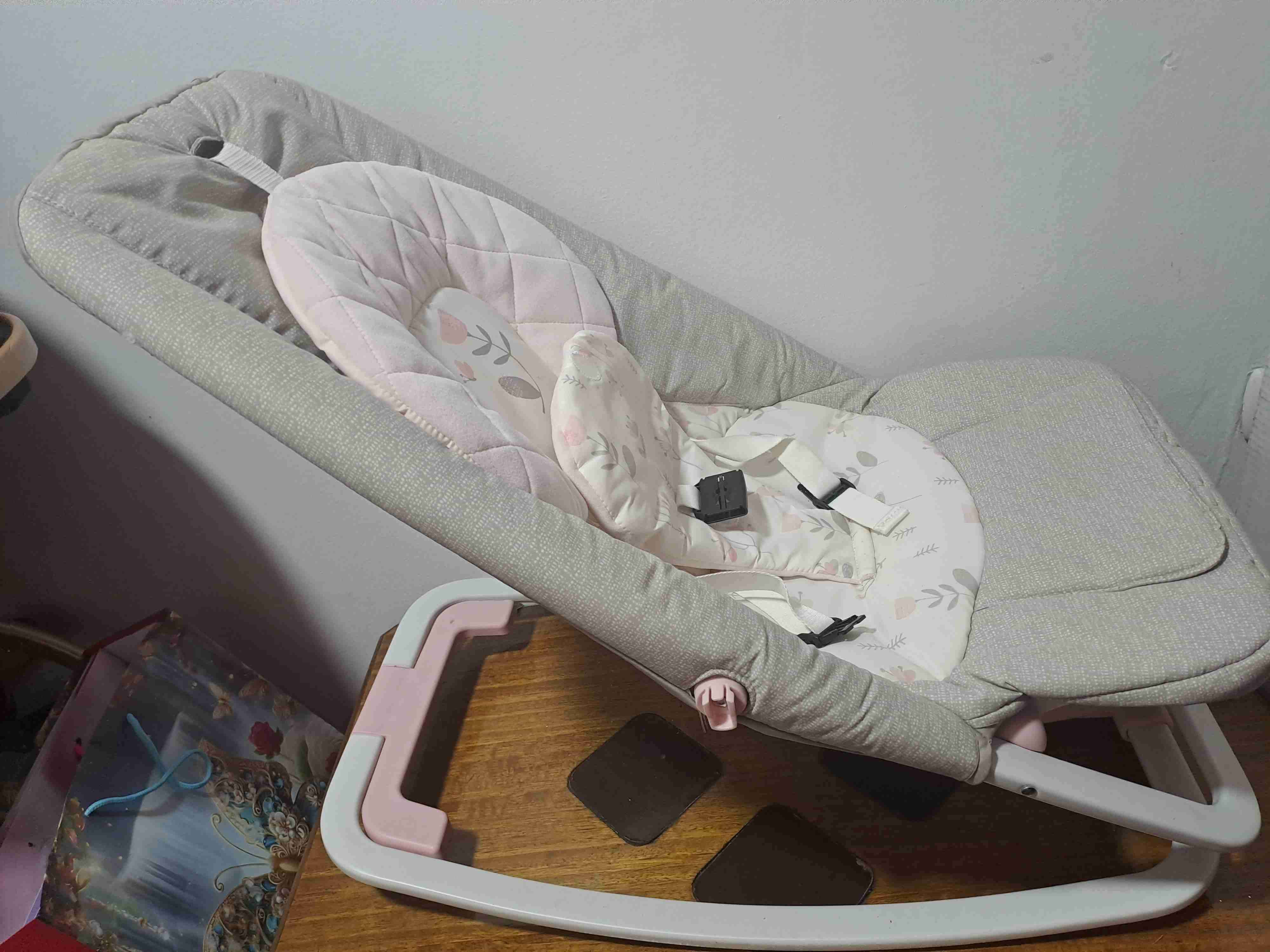 Cómoda silla mecedora gris para bebé, ideal para descanso y juego. En buen estado, poco uso. Dejo el precio de referencia e incluye todos los accesorios.