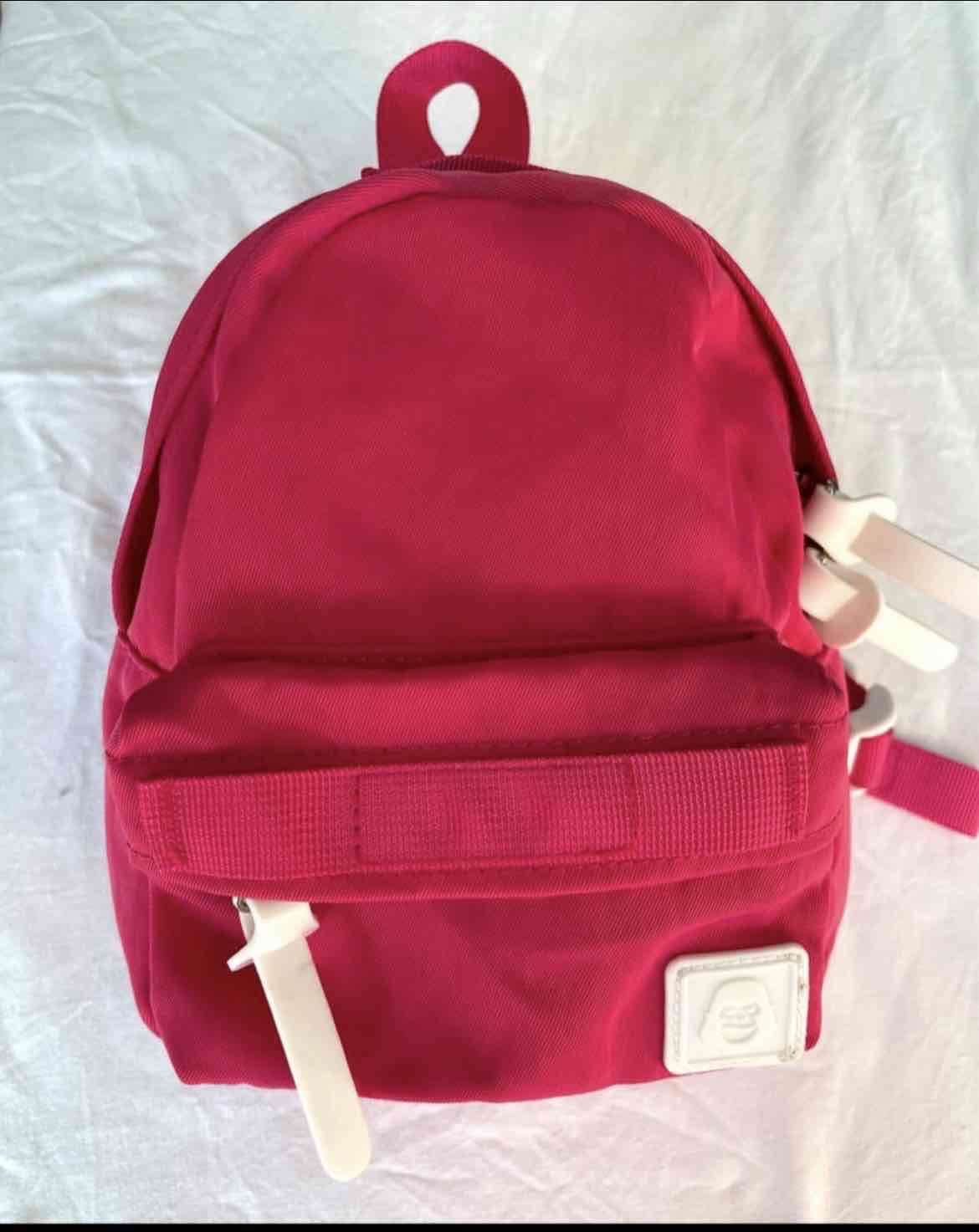 Mochila compacta y resistente de color rojo, ideal para uso diario. Perfecta para llevar lo esencial, independientemente q diga q es para mujer, sirve perfectamente para niñas, porque es chica de tamaño pero tiene las cuerdas bien amplias, es muy linda!!
