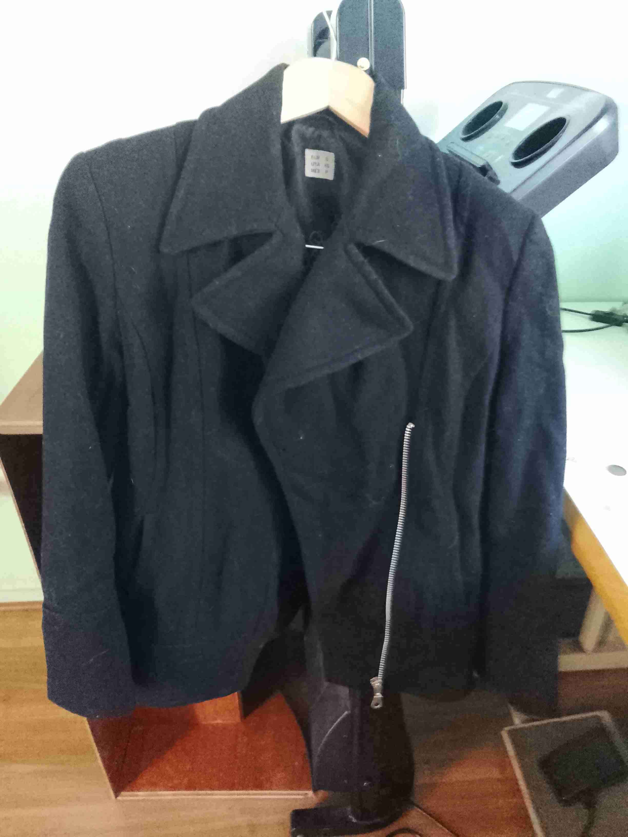 Chaqueta elegante negro con cierre lateral, ideal para invierno. En buen estado.