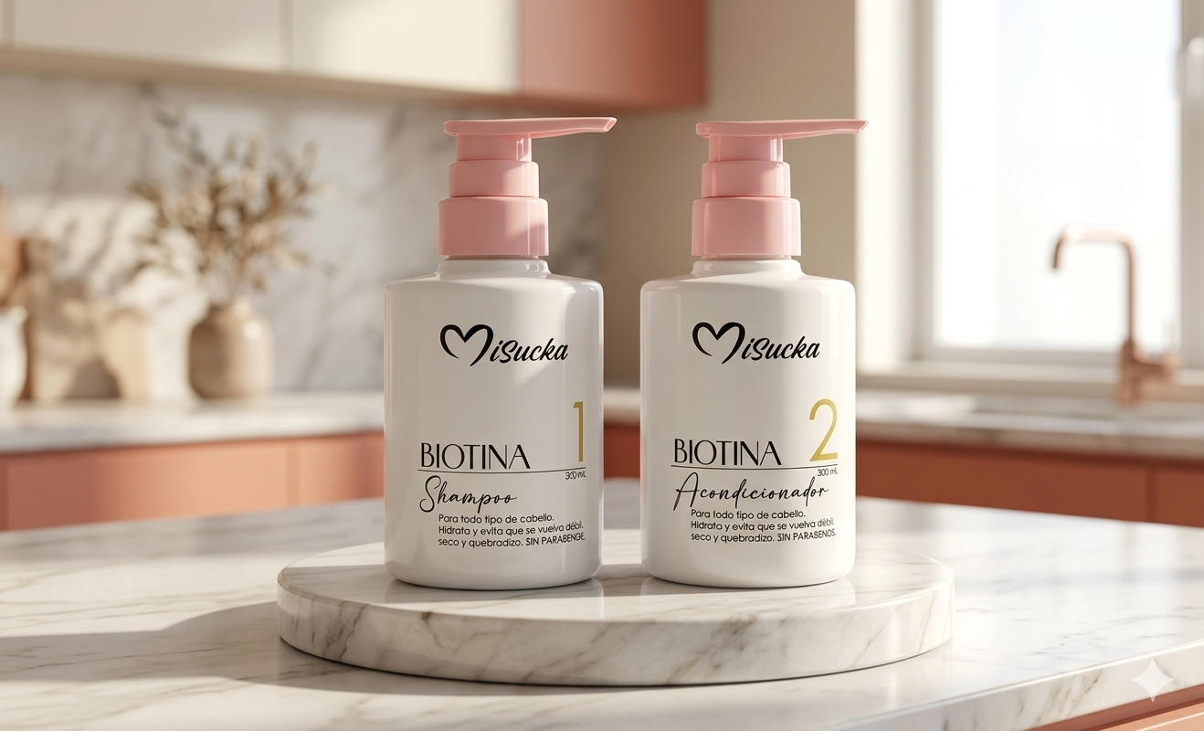 Set de cuidado capilar con biotina, ideal para todo tipo de cabello. Formulado para hidratar y fortalecer. Producto nuevo, sin parabenos.