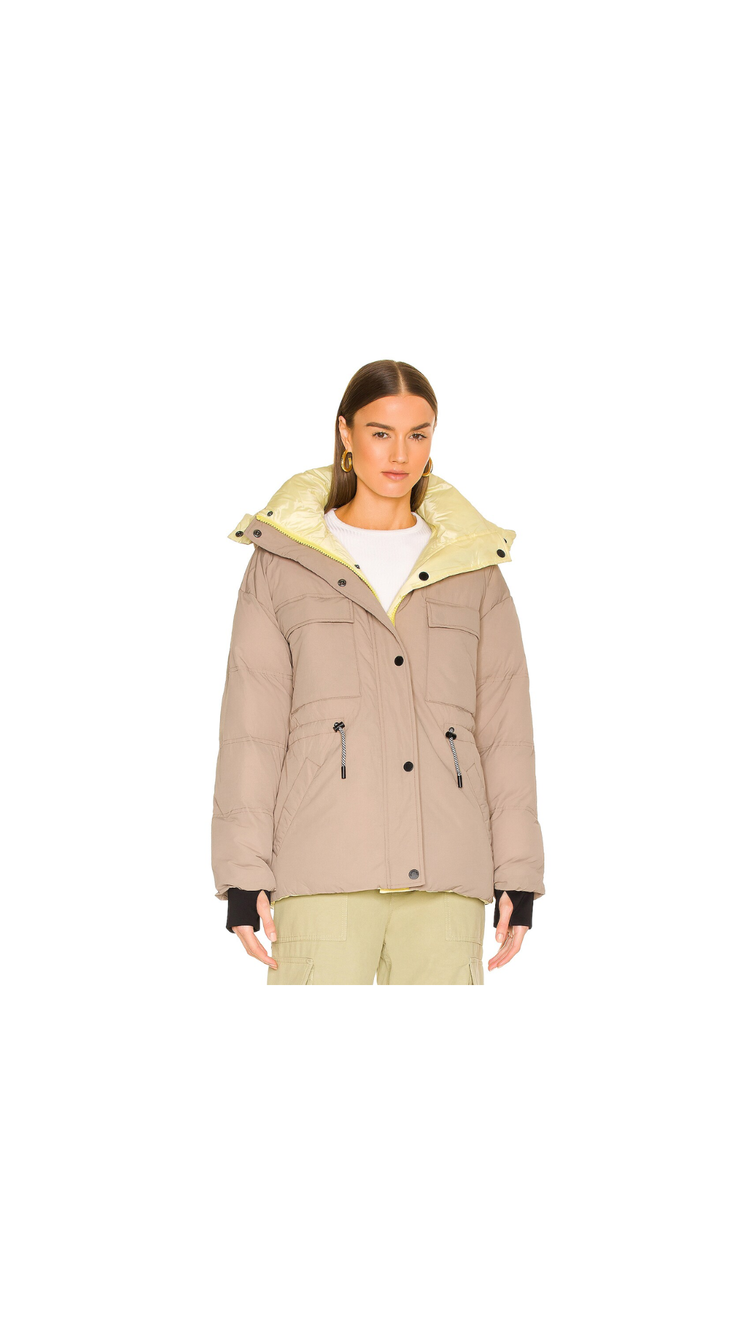 Chaqueta acolchada color beige y amarillo ,ideal para el invierno. Importada, nueva con etiqueta, es reversible con varios bolsillos en su interior.