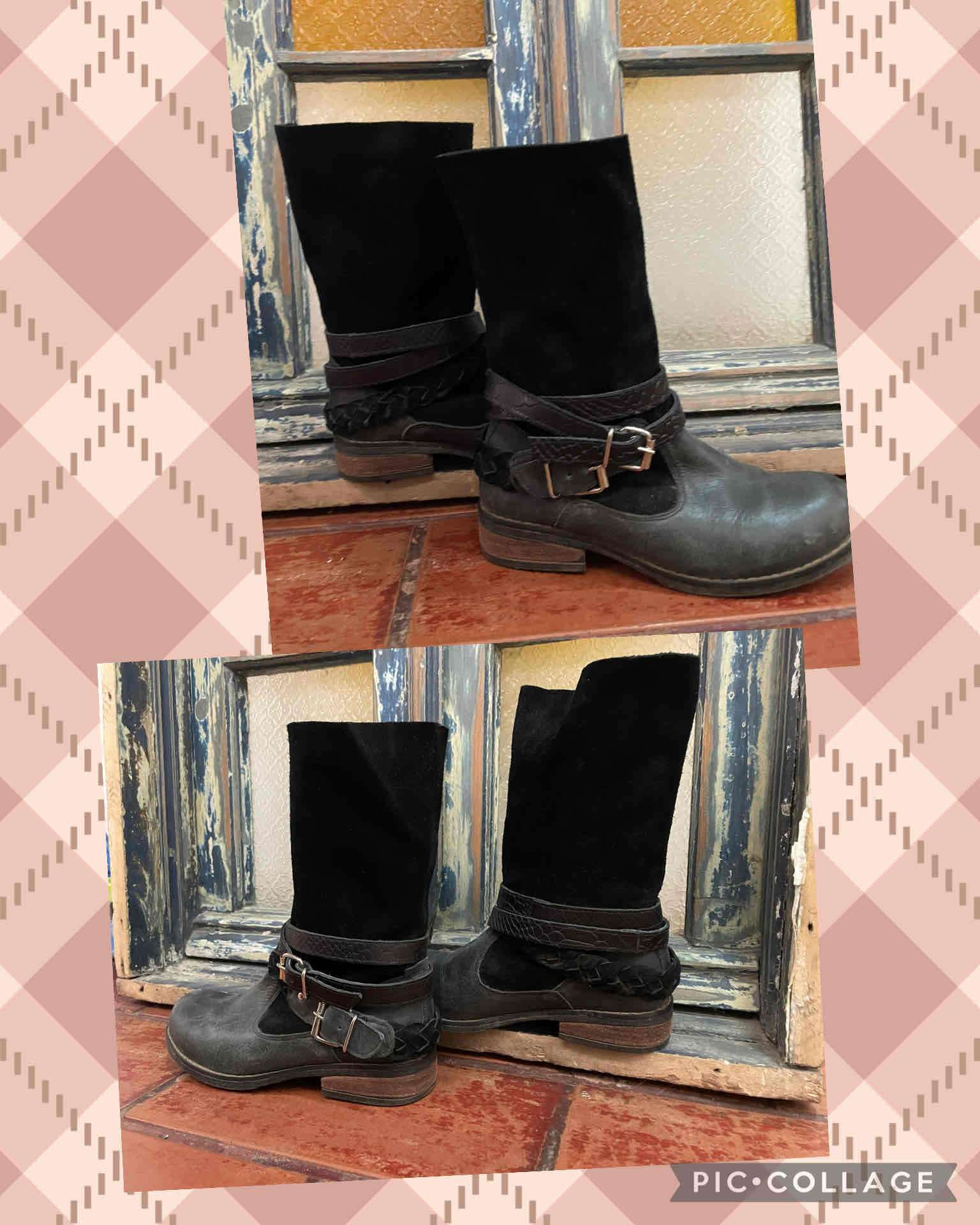 Botas negras estilo bohemio con hebilla decorativa y detalles de gamuza. En buen estado, perfectas para el otoño.Marca Giani Dafirenze. 100 % hechas en Chile. Taco 2.5 cm.
