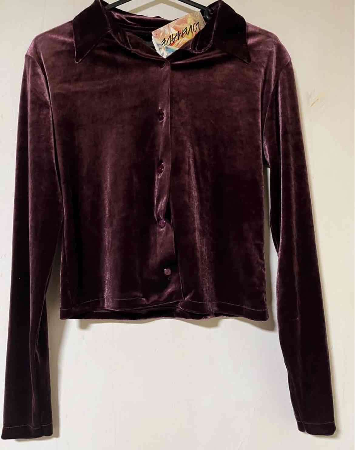 Camisa de terciopelo color granate, ideal para otoño. En buen estado.