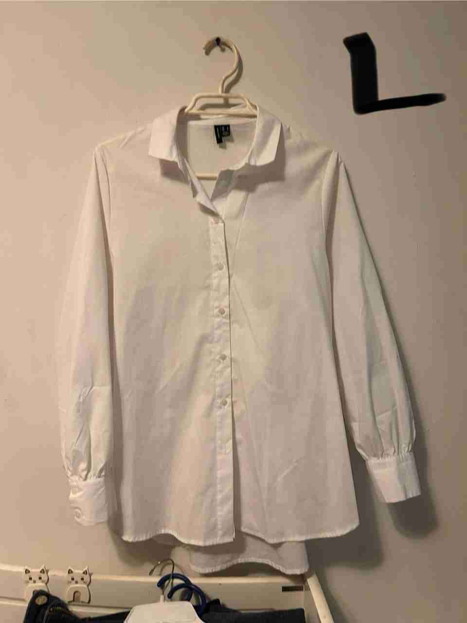 Blusa blanca de manga larga, perfecta para ocasiones formales o de oficina. En buen estado general