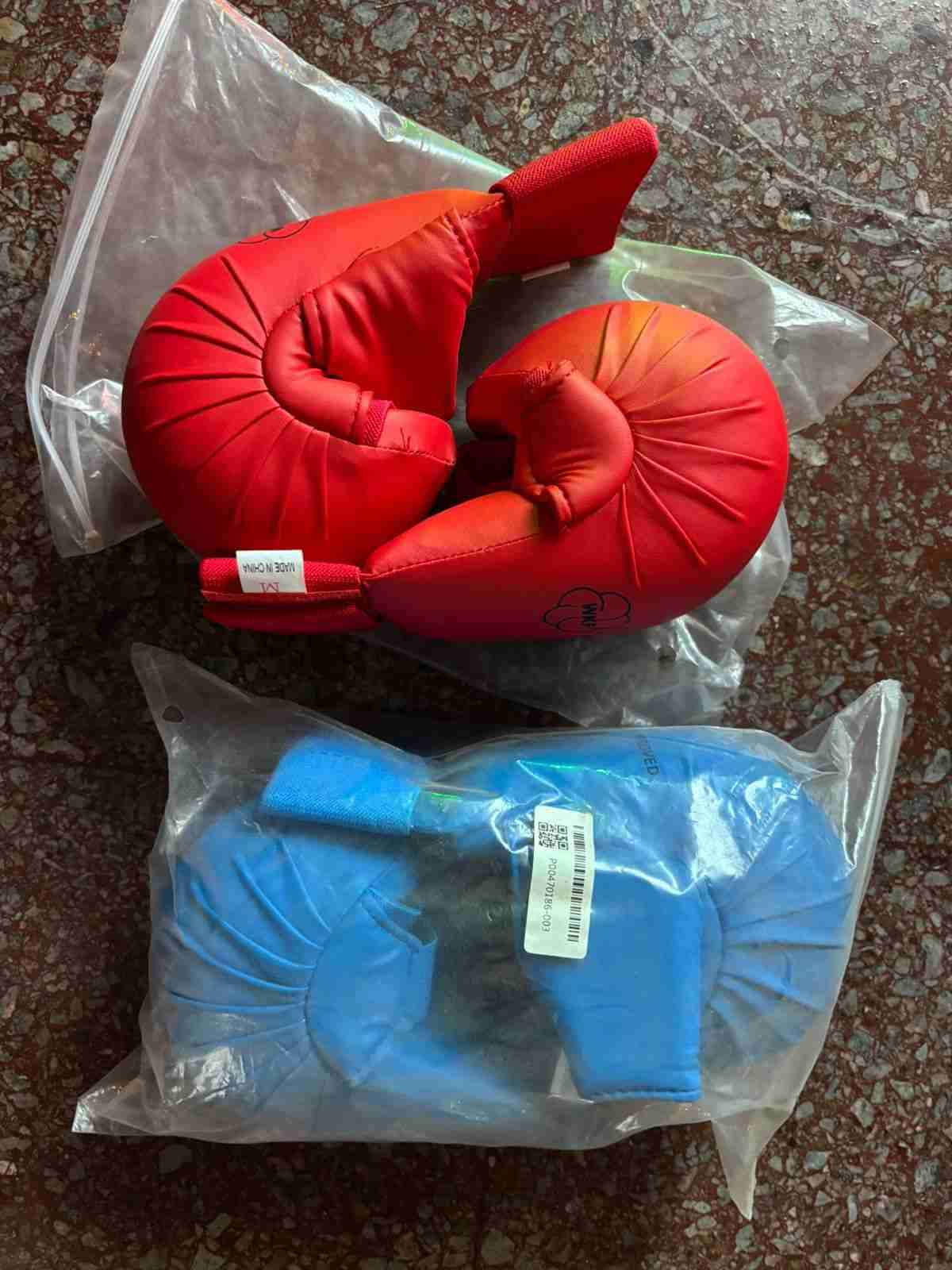 Guantillas de karate en color rojo y azul, entrenamiento y competencia. Talla M,niños. Nuevos en su empaque original. Ambas x 20.000