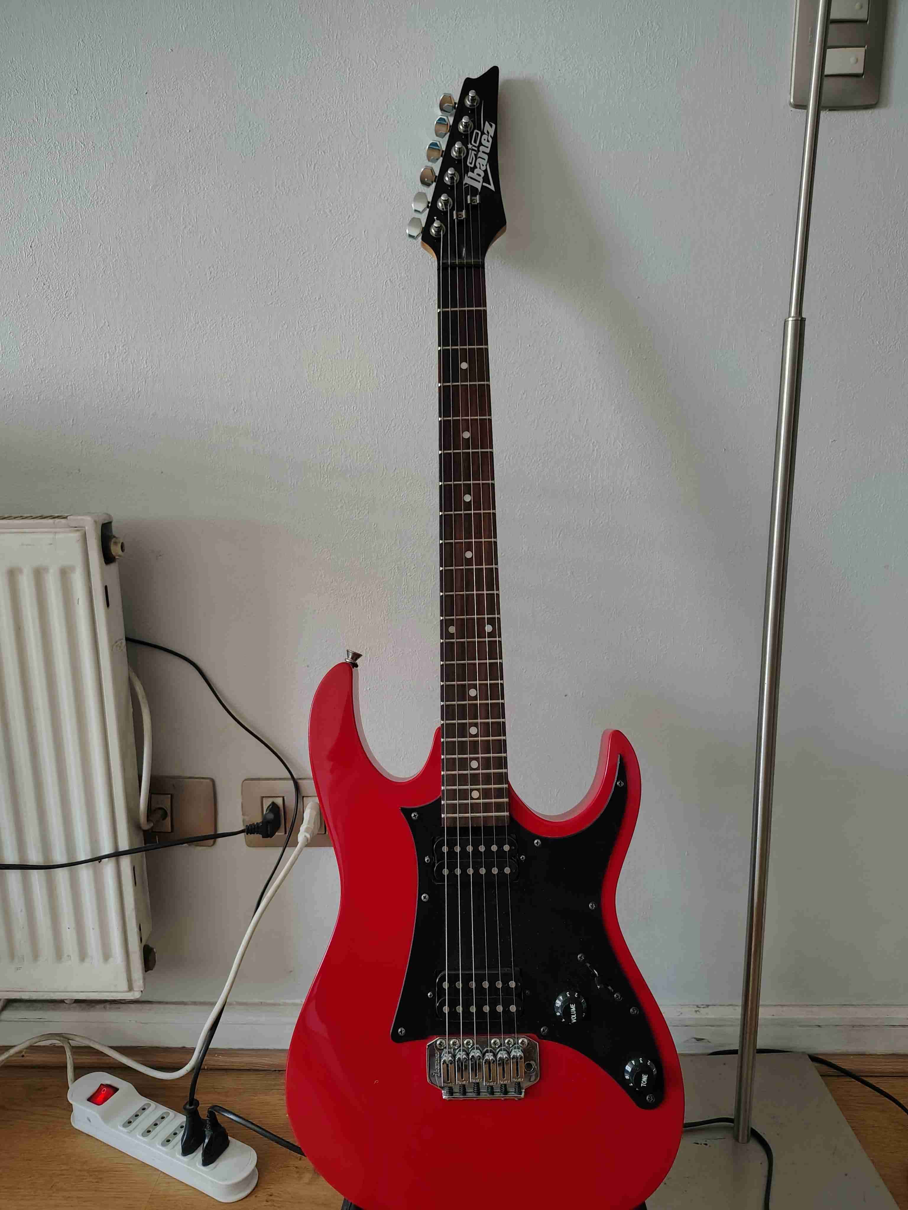 Guitarra eléctrica roja ideal para principiantes. Se vende por no uso, está en muy buen estado, lista para usar, precio incluye la bolsa