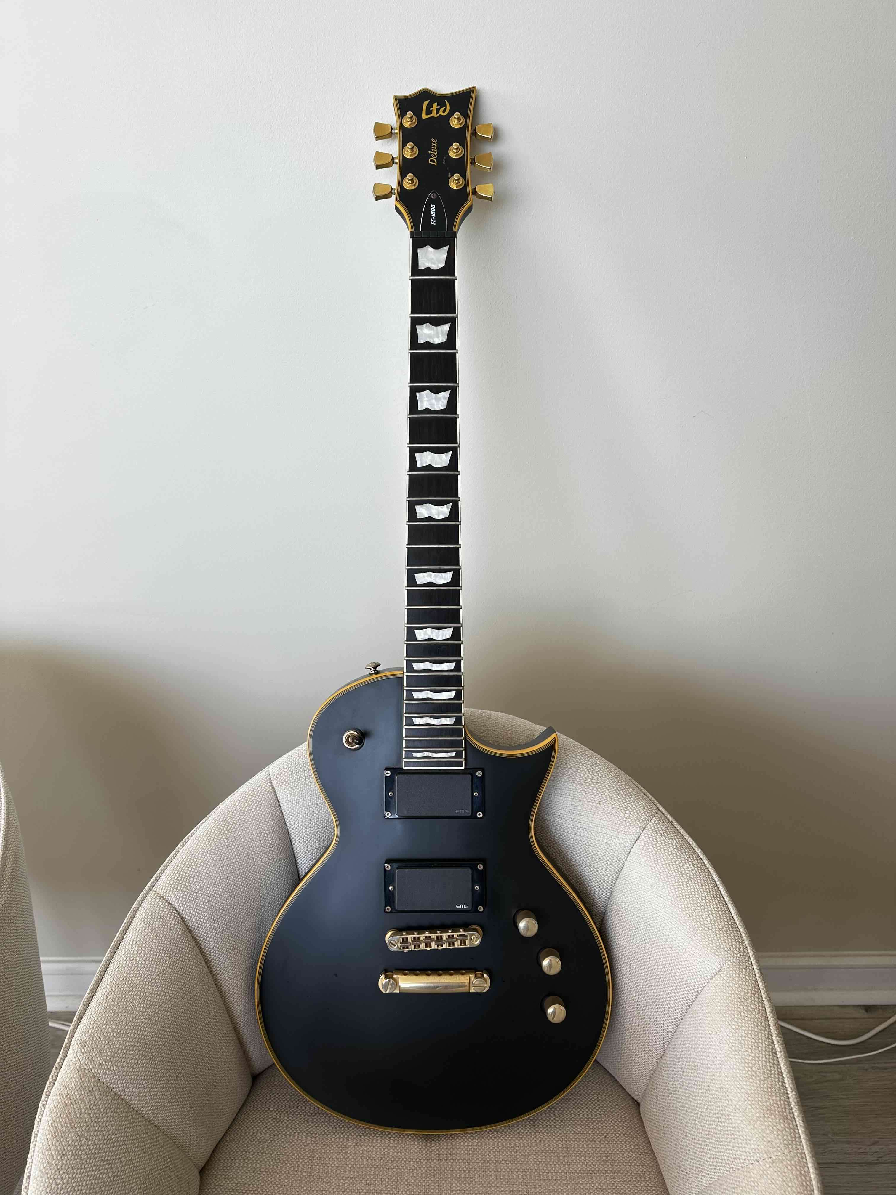 Guitarra eléctrica LTD/ESP en excelente estado. Ideal para rock y metal, diseño elegante en negro.