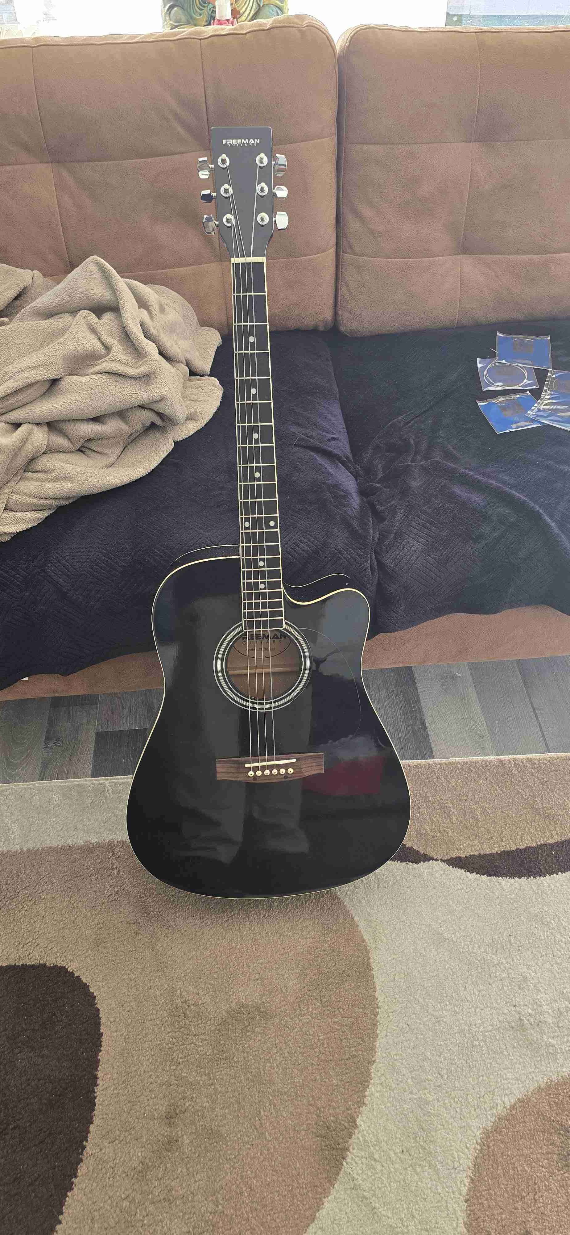 Guitarra electroacústica Freeman, le faltan 2 cuerdas y tiene sus cuerdas de respuesto