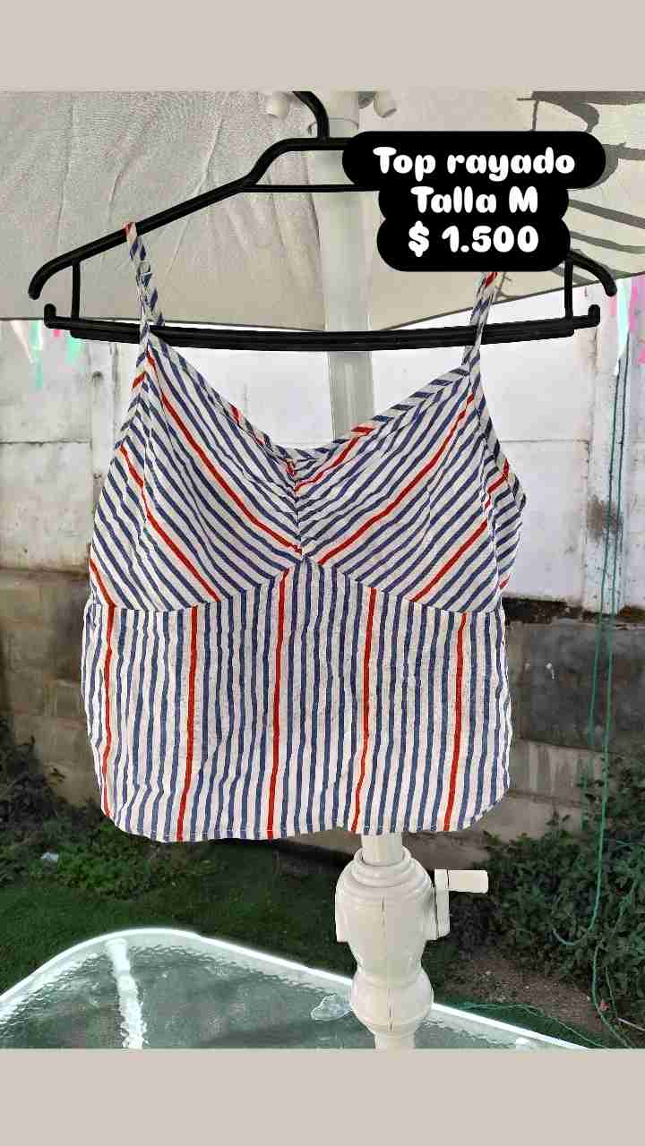 Top sin mangas a rayas azules, rojas y blancas es perfecto para el verano. Talla M y en buen estado.