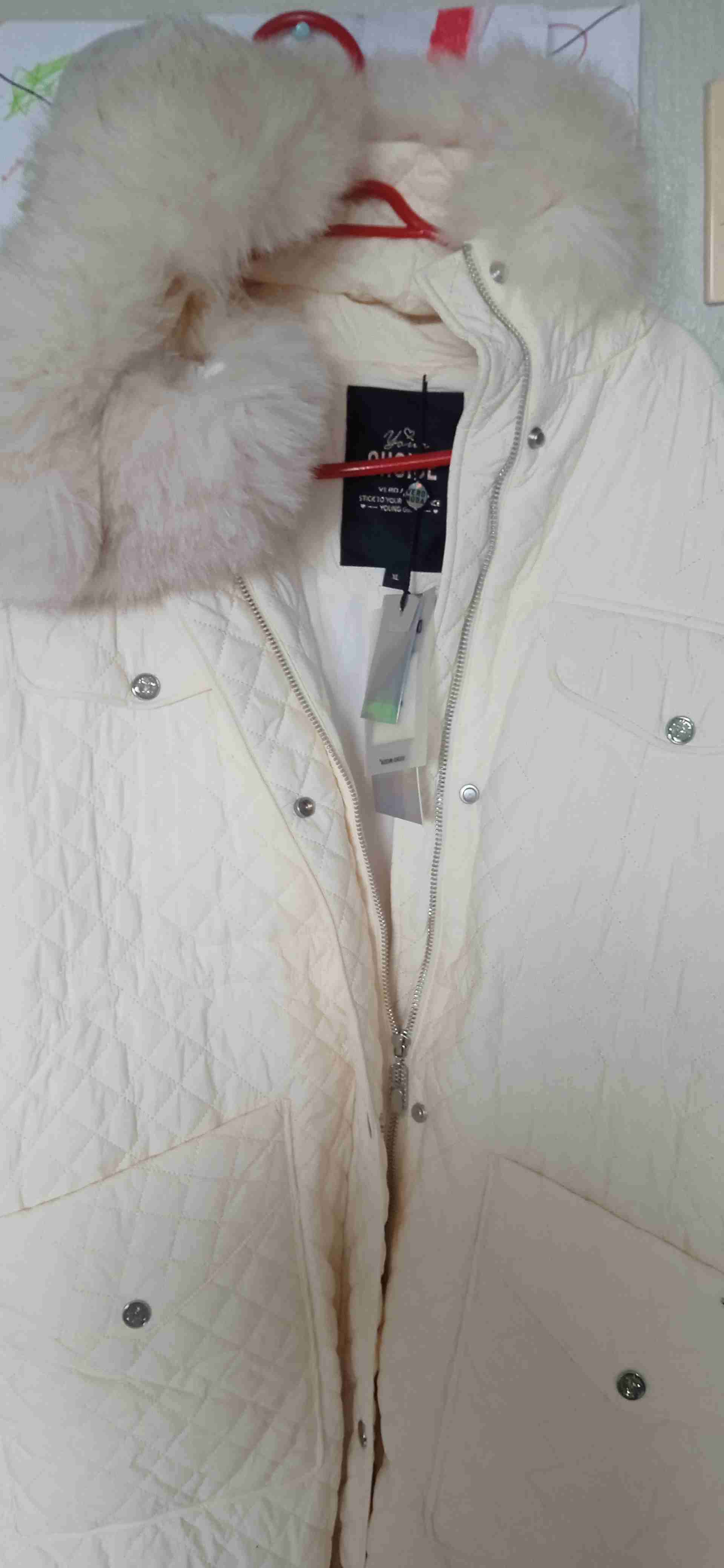 Parka blanca con capucha de piel sintética de plumas , ideal para el invierno. Nueva con etiquetas.