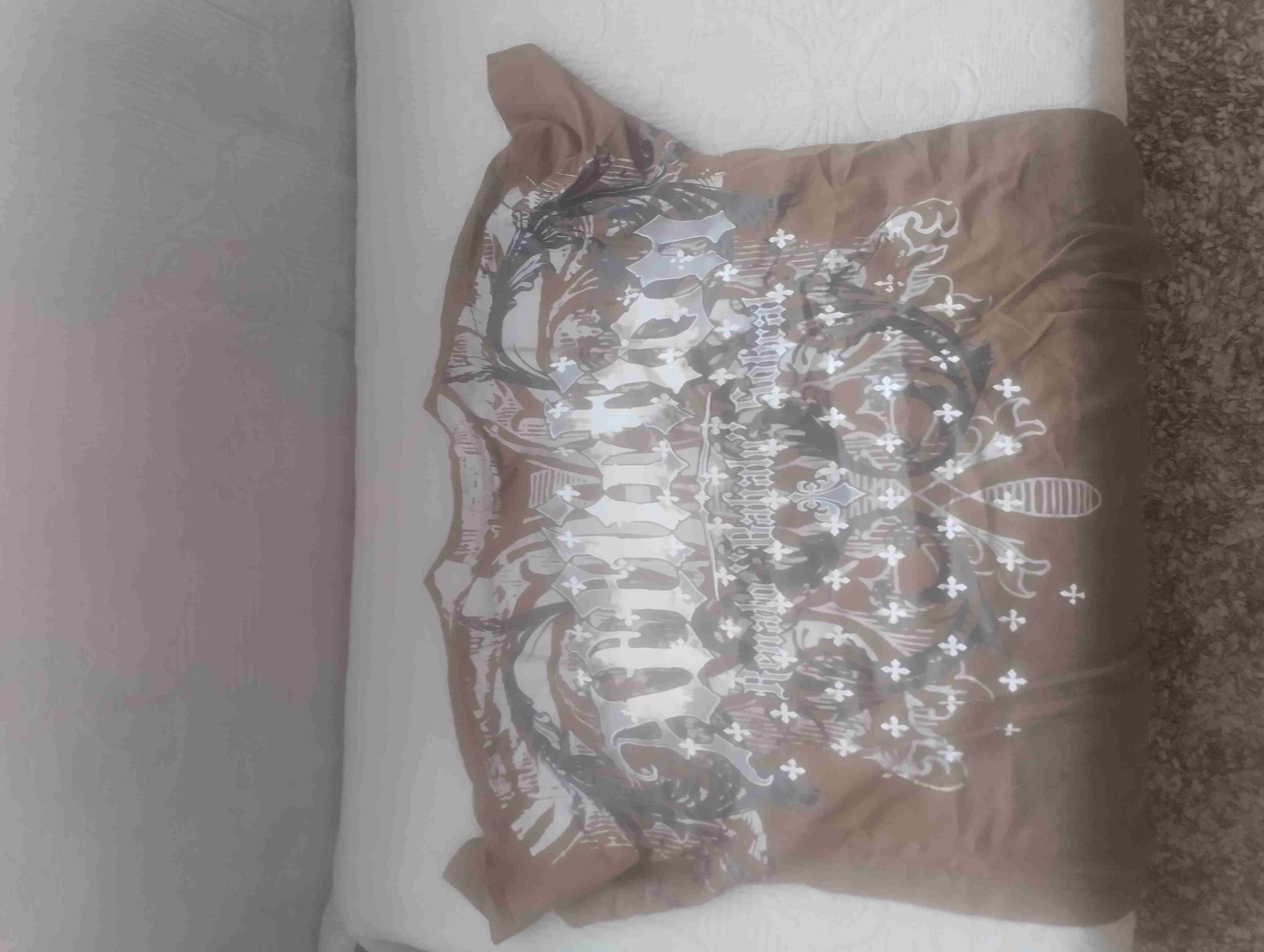Polera de manga corta con diseño gráfico en tonos marrones y detalles brillantes. Ideal para un look casual y moderno.