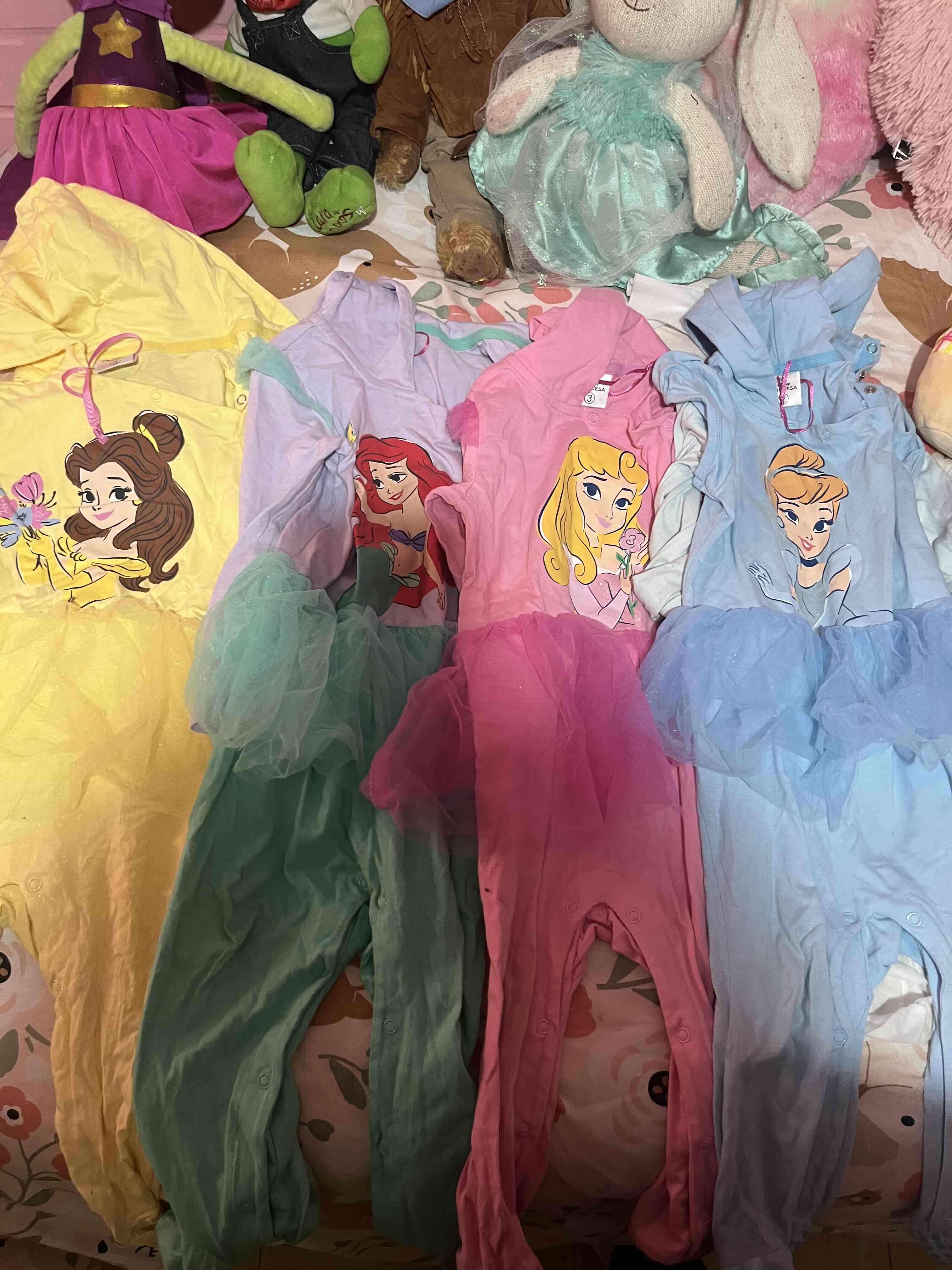 Conjunto de pijamas de princesas Disney en varios colores. Ideales para el descanso diario de las pequeñas fanáticas de los cuentos. En buen estado.