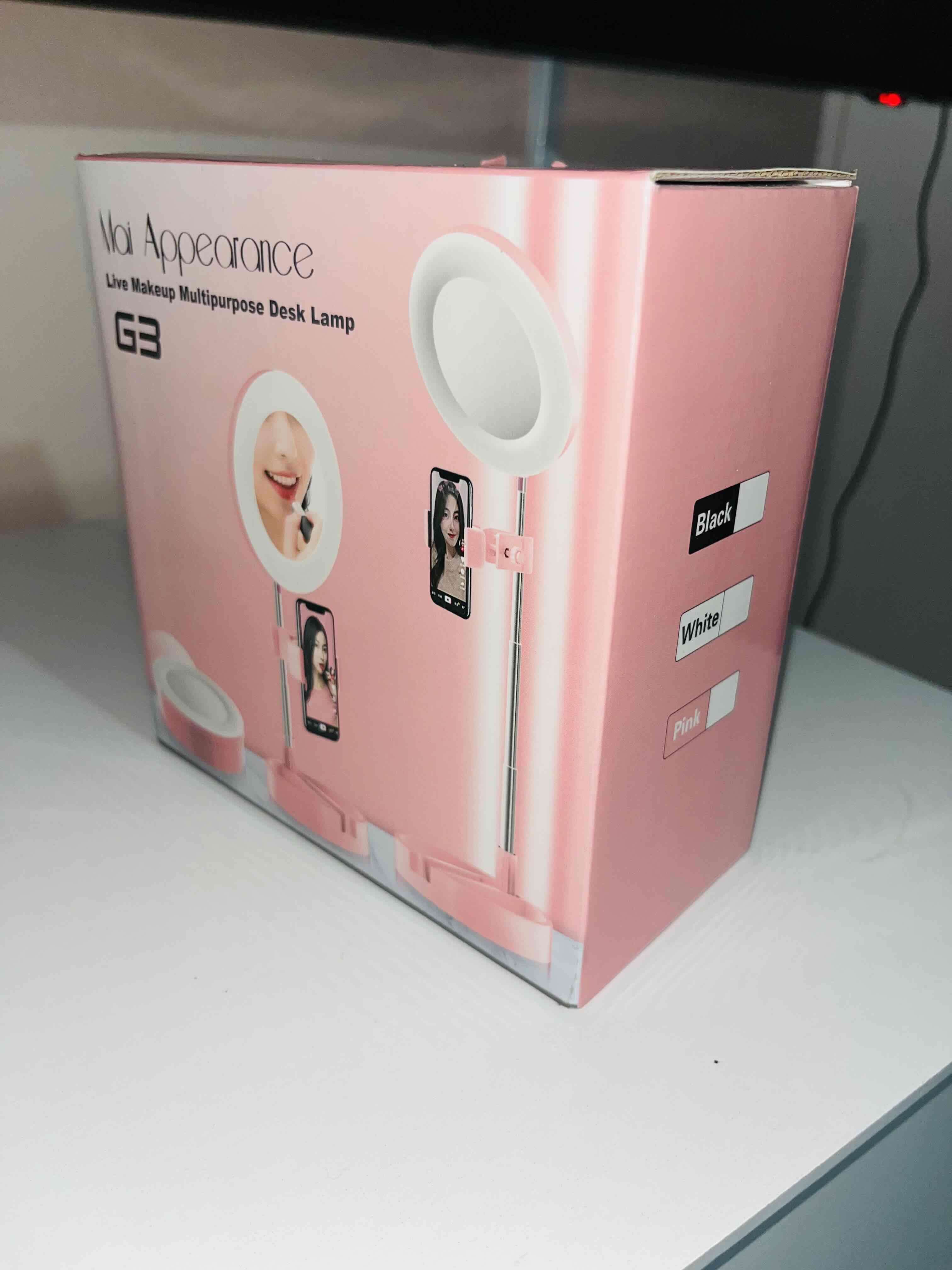 Lámpara multifuncional para maquillaje en color negro, ideal para tocador. Nueva en caja original.