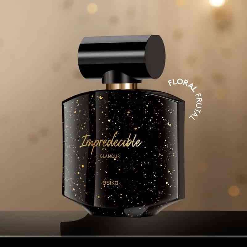 "Perfume original ÉSIKA, línea Glamour. ✨ Aroma: Floral Frutal (Fresas, Neroli, Vainilla). ✨ Concentración Alta, dura mucho rato. ✨ Diseño elegante y único. 📦 Venta por encargo, producto nuevo y sellado.