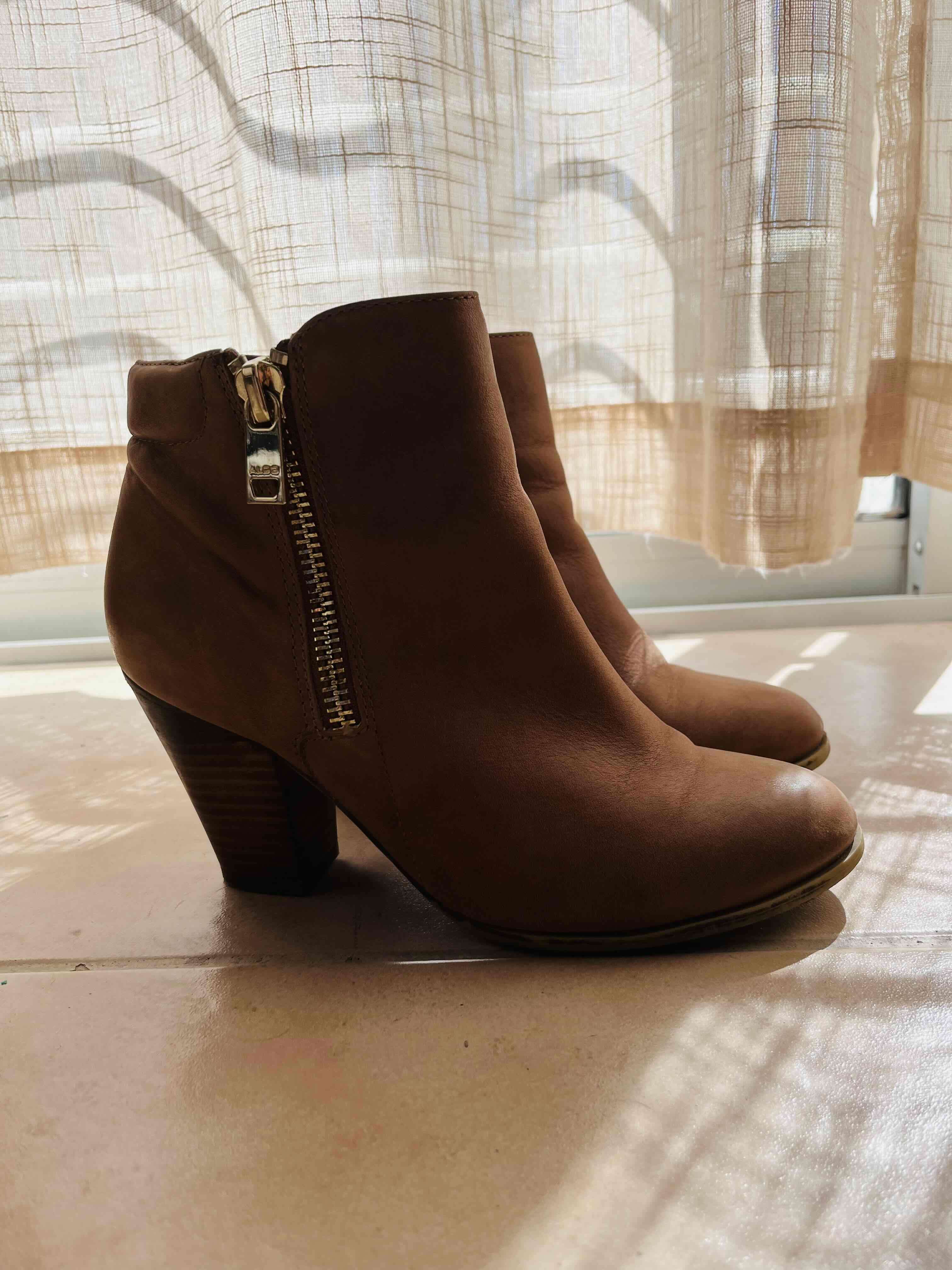Elegantes botines de cuero marca Aldo color marrón, ideales para otoño. En buen estado, con cierre lateral.