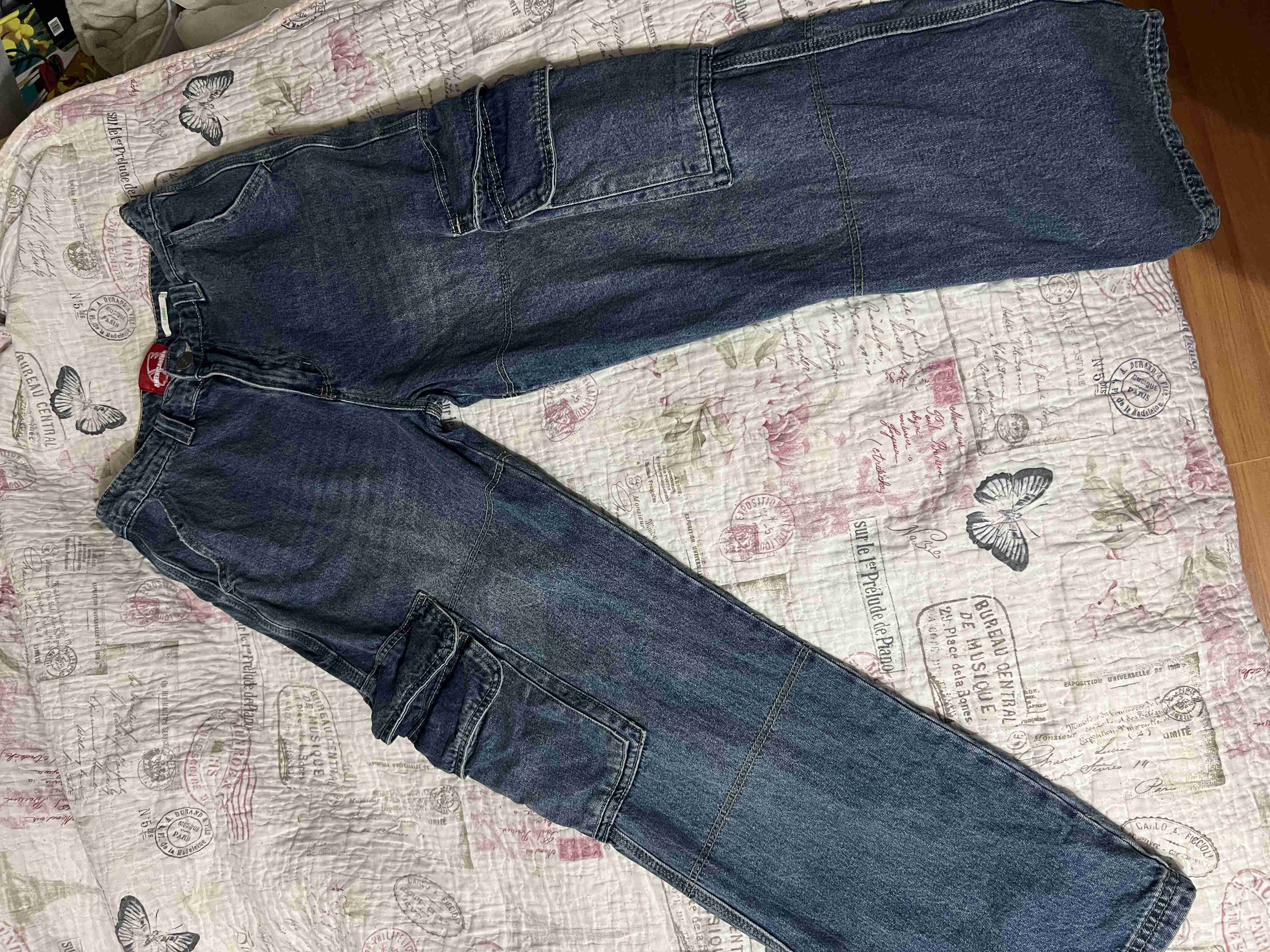 Pantalones de mezclilla azul con bolsillos cargo, ideales para uso casual. En perfecto estado, con solo dos usos.