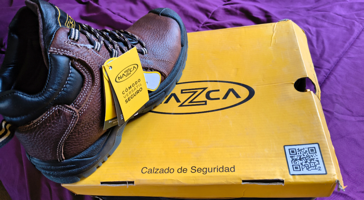 Botas de seguridad cómodas y resistentes en color marrón. Ideales para trabajo diario. Caja original incluida.
