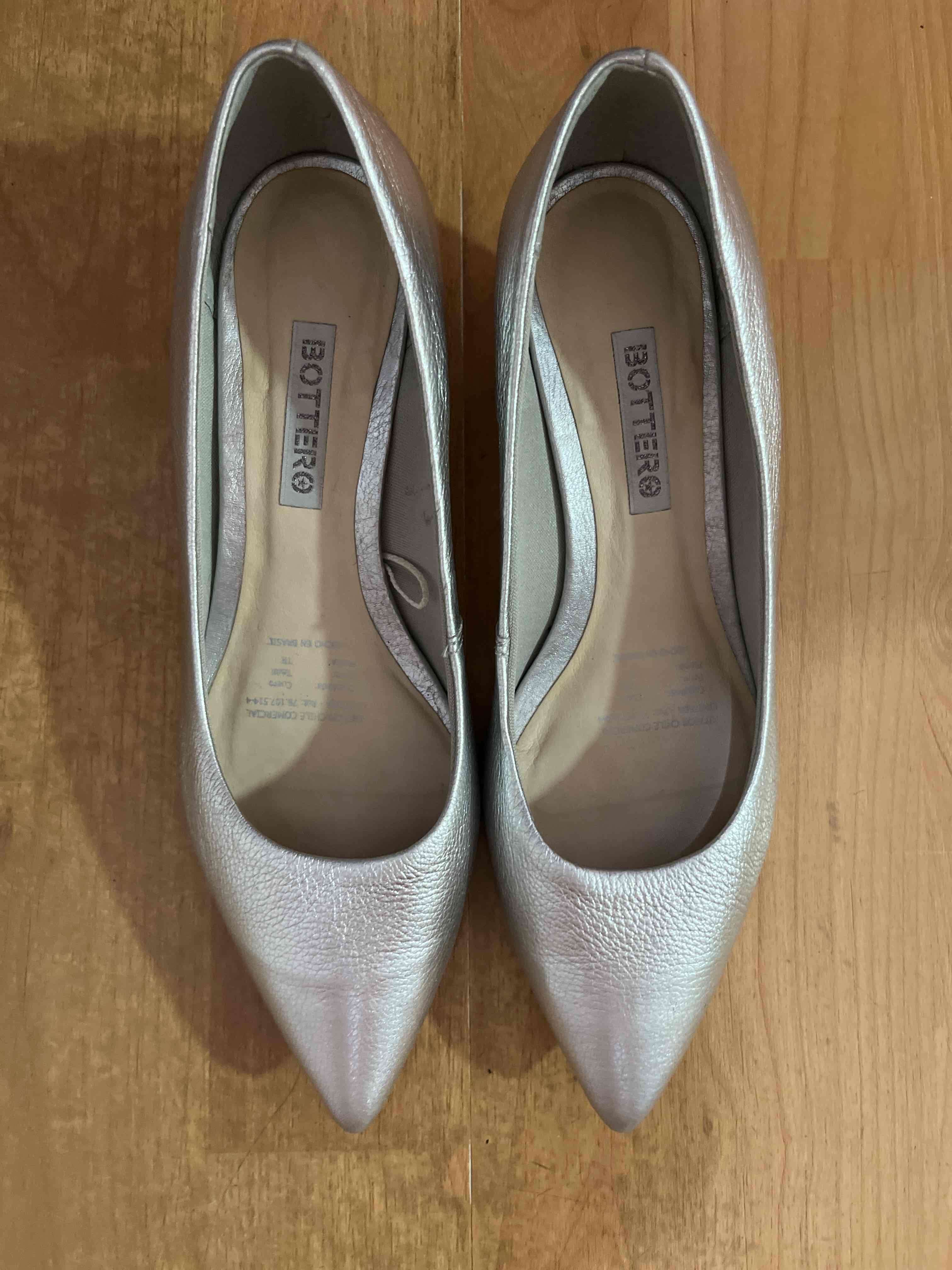 Elegantes zapatos plateados marca Bottero, en buen estado general, ideales para ocasiones especiales.