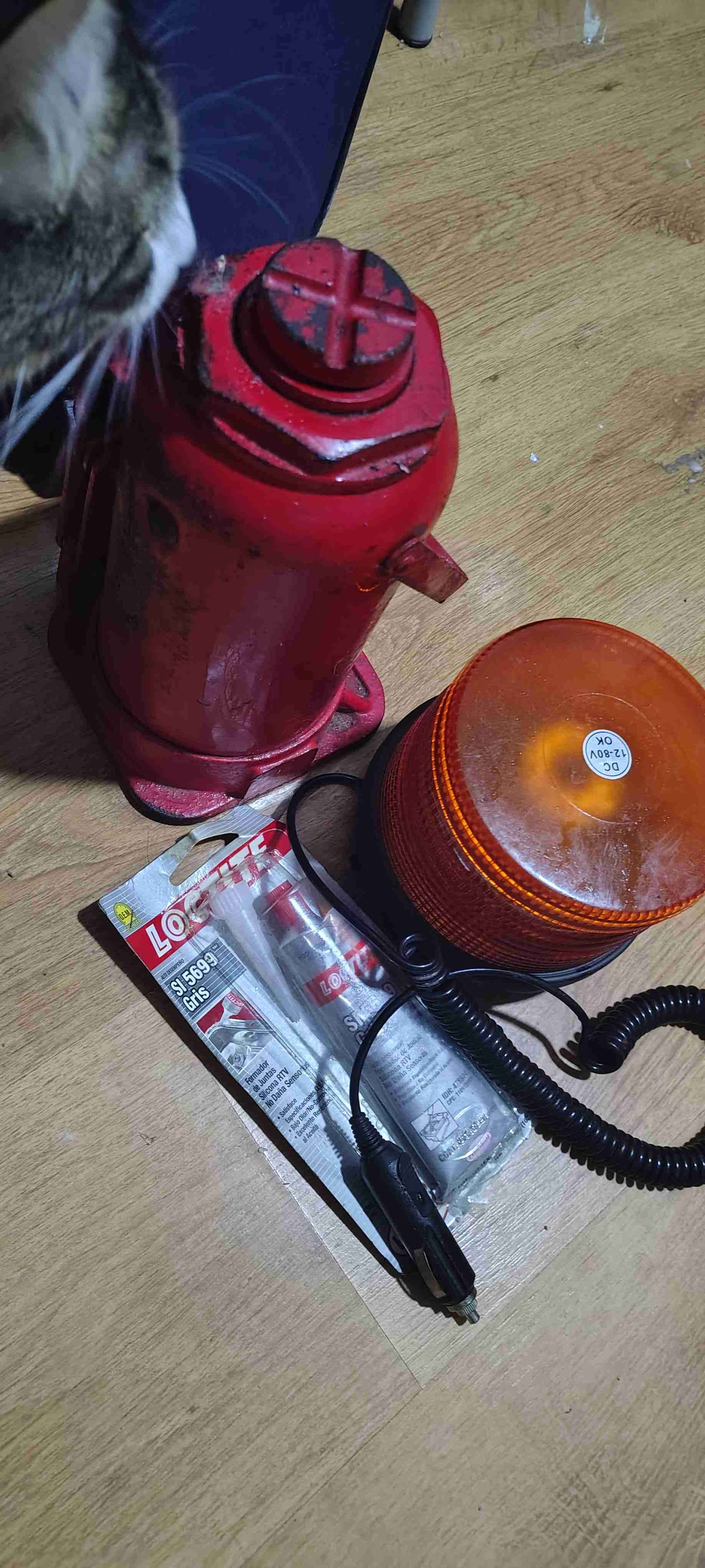 Incluye un gato hidráulico, luz de emergencia y adhesivo. Ideal para emergencias en el camino. Usado y en buen estado general.