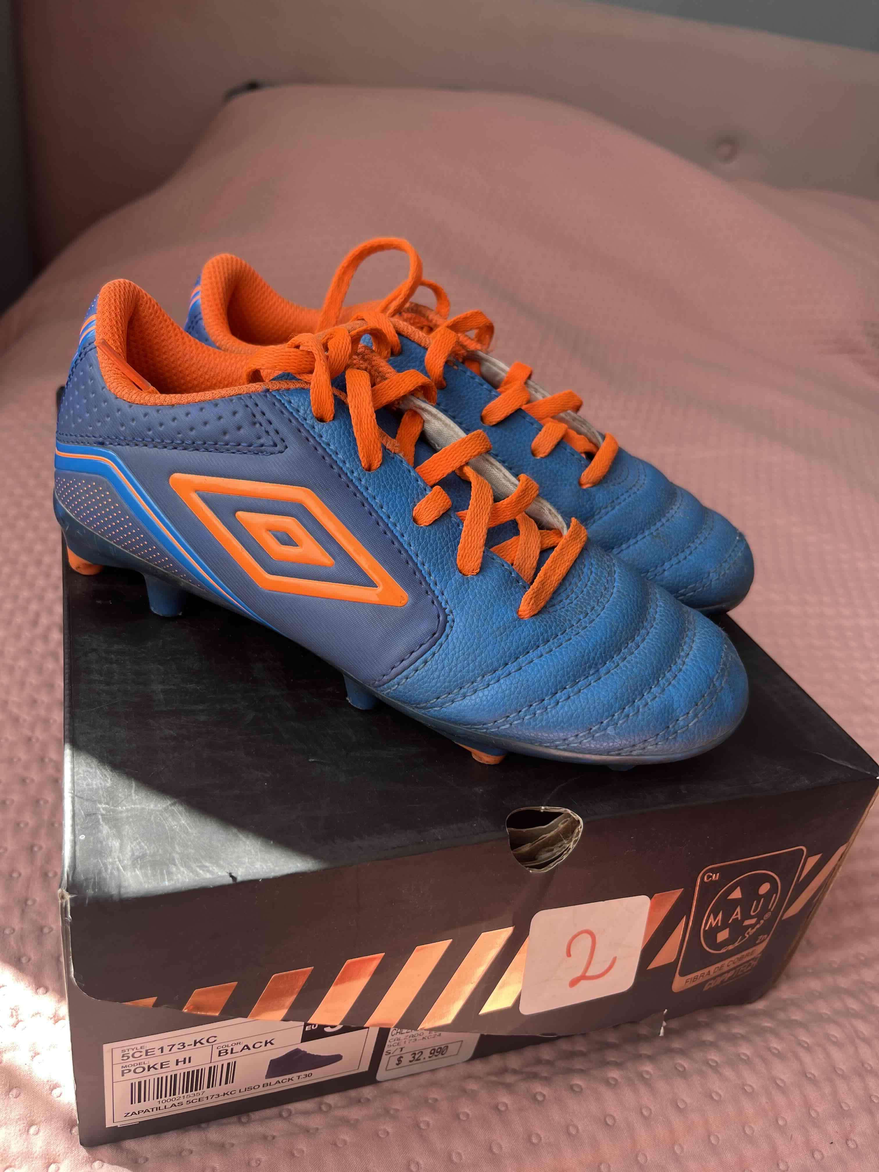 Zapatillas de fútbol Umbro en azul y naranja, perfectas para jugar Buen estado número 32.