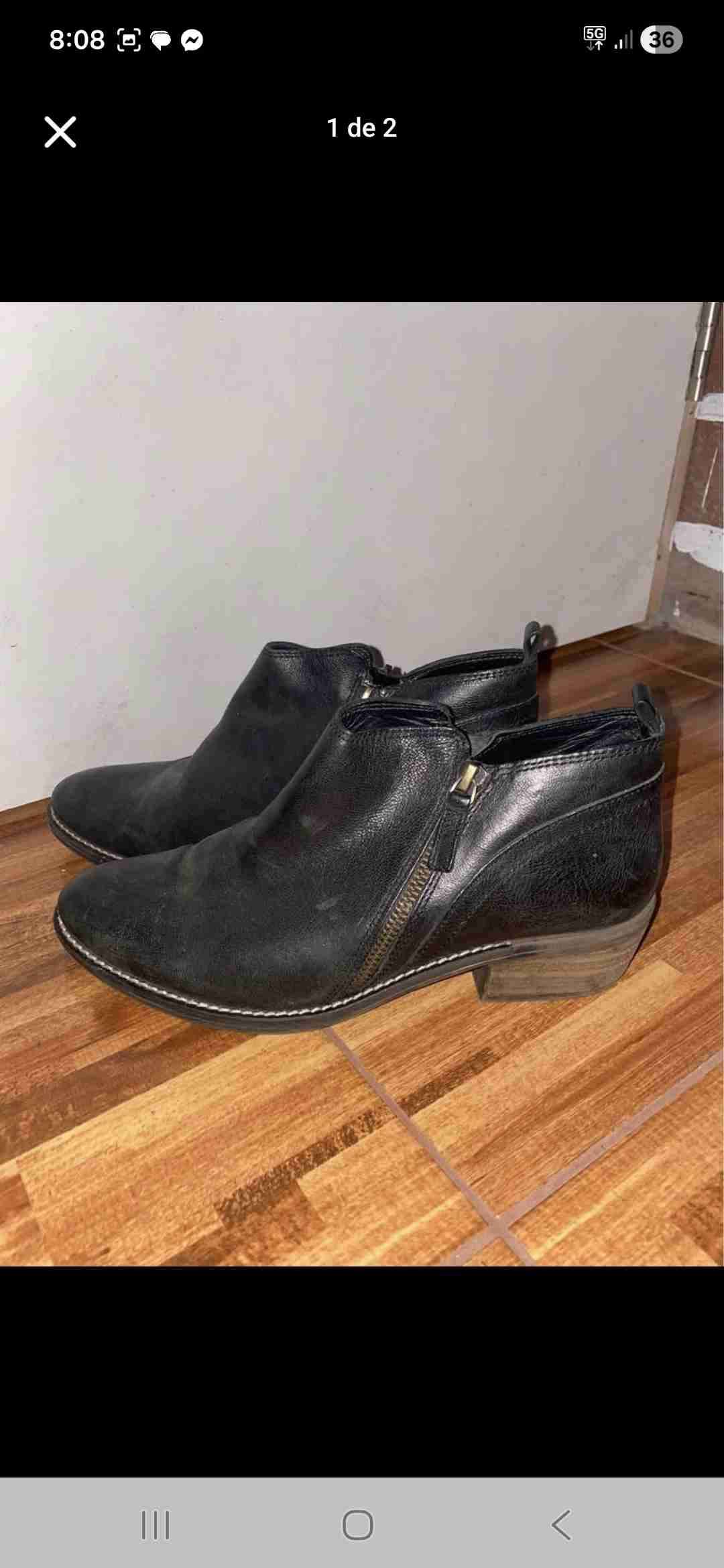 Botines de cuero negro con cierre lateral, diseño clásico ideal para el otoño. En buen estado y cómodos para el uso diario.