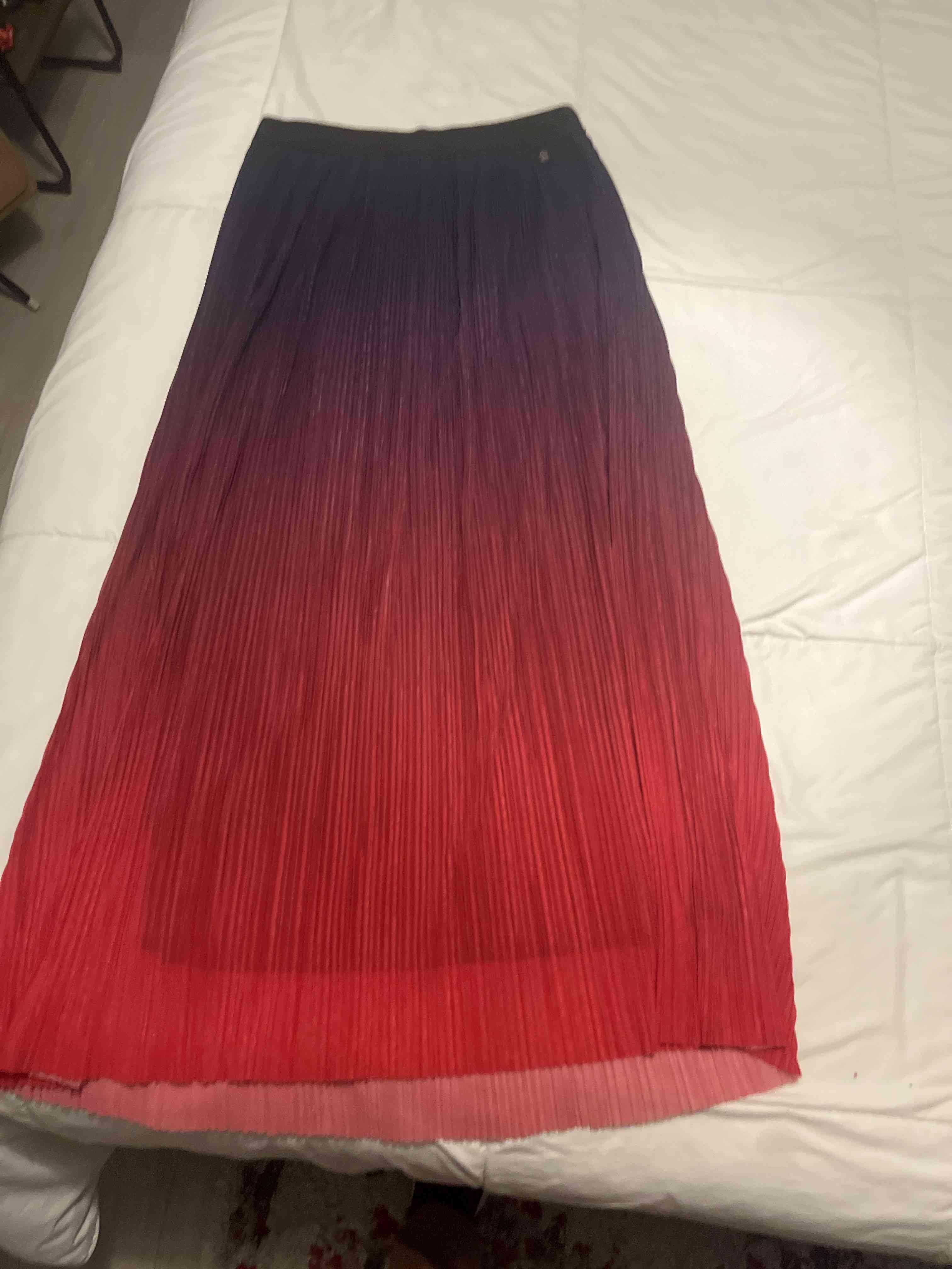 Falda larga con efecto degradé de negro a rojo. Perfecta para ocasiones especiales. En buen estado.