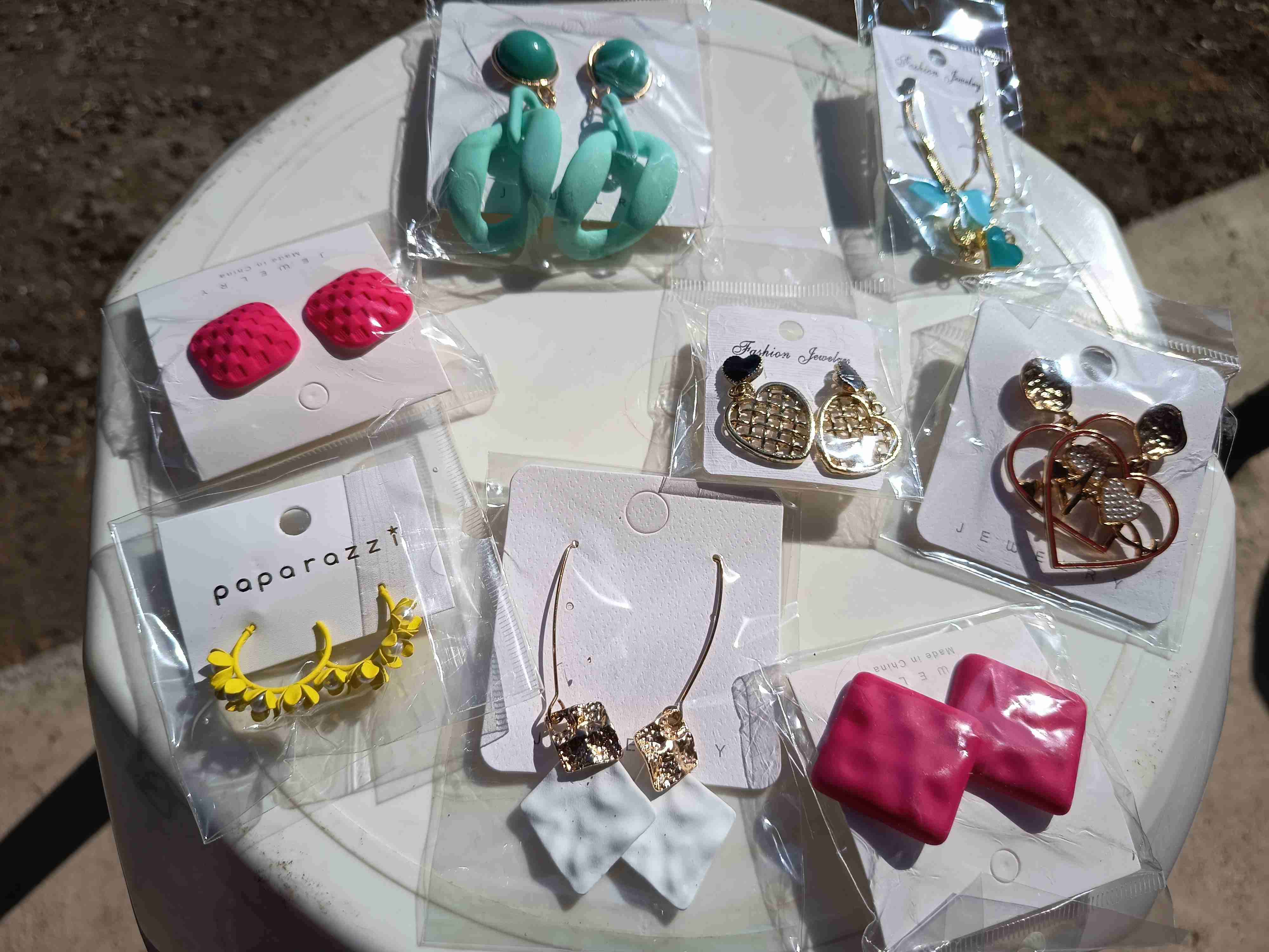 Conjunto de aros coloridos y modernos para distintas ocasiones. En buen estado, ideales para complementar cualquier look. 1 par a solo $2000 y 3 pares x $5000