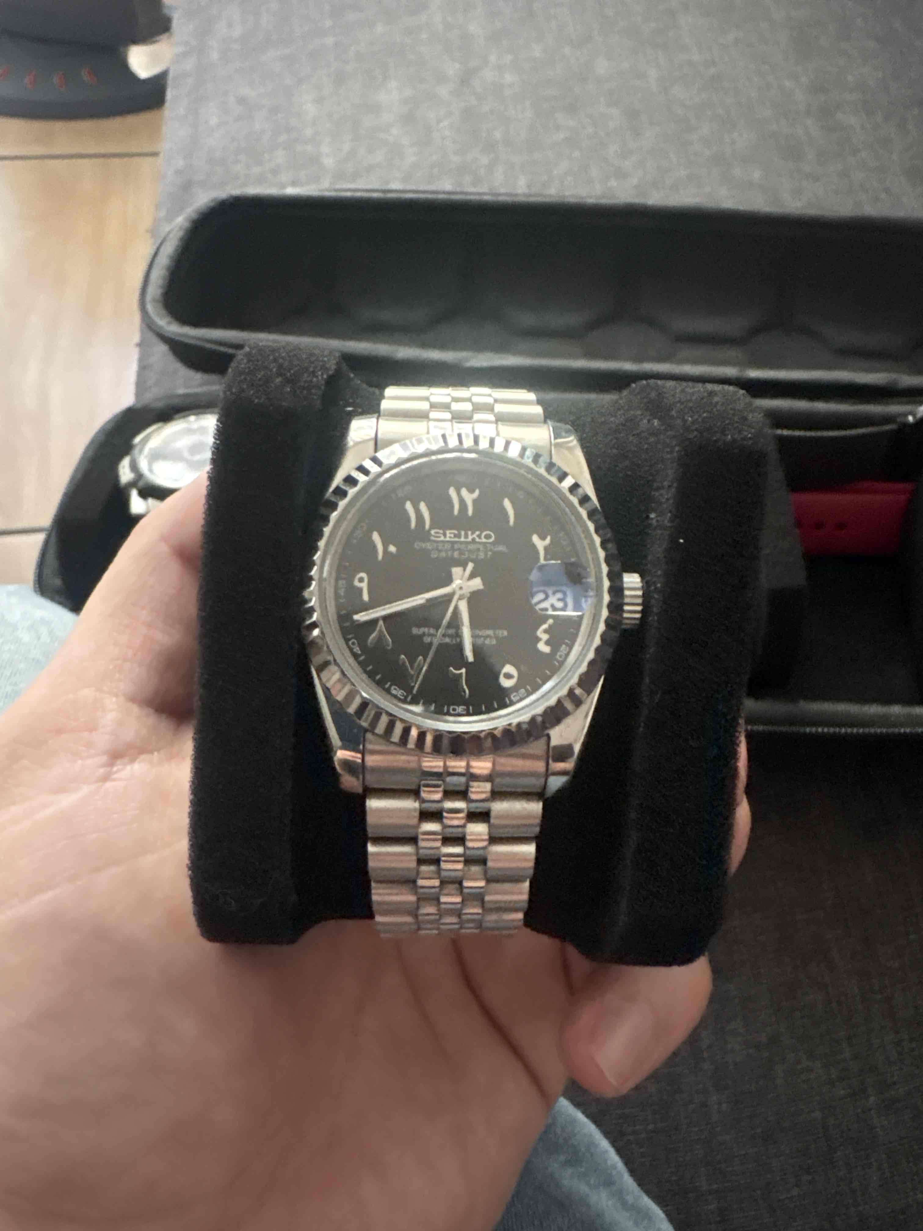 Reloj automático Seiko con números árabes. Diseño elegante, ideal para uso diario o eventos especiales.
