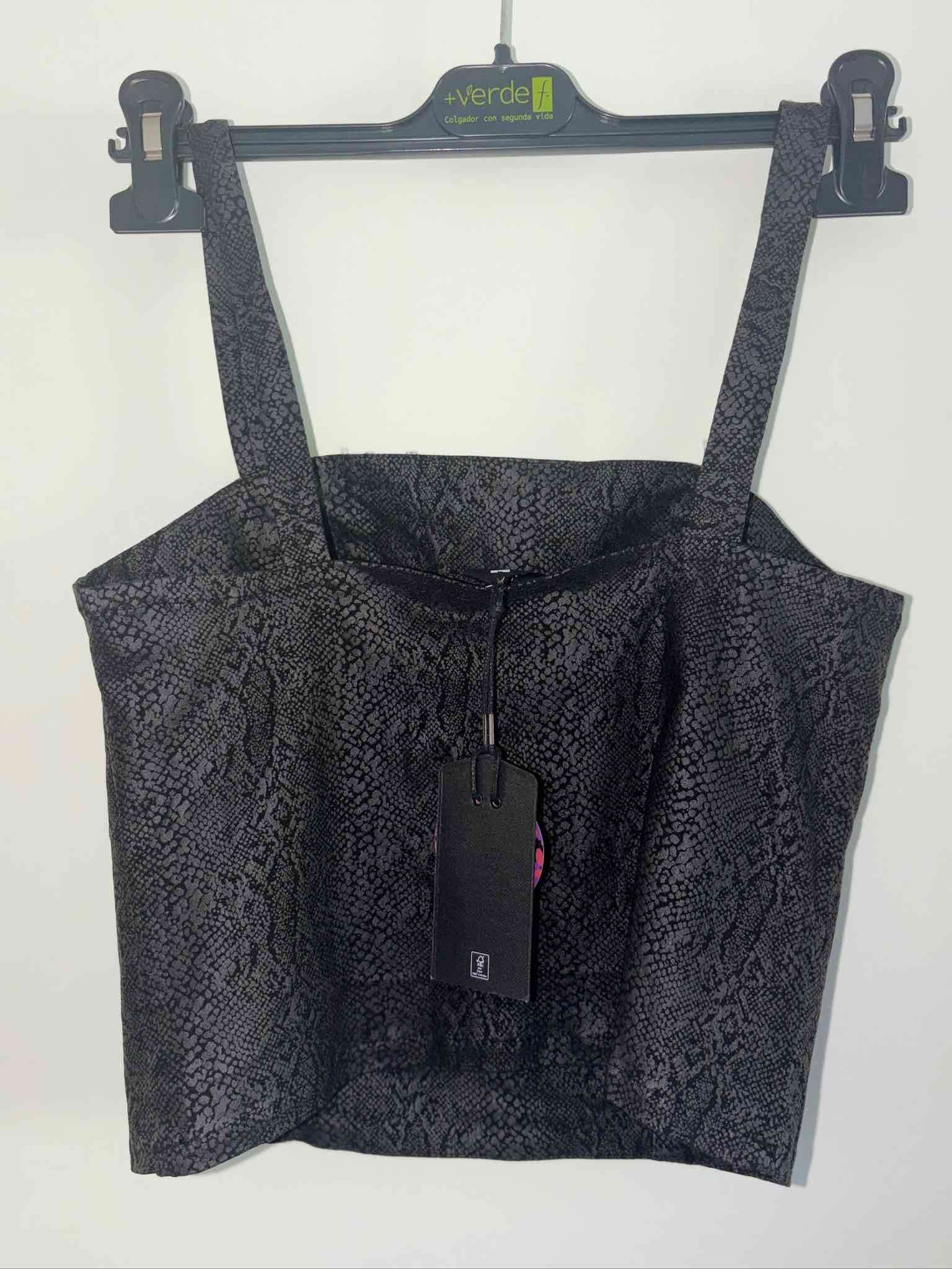 Top elasticado estilo bustier negro con patrón de serpiente. Ideal para salidas o eventos nocturnos. Mossimo.