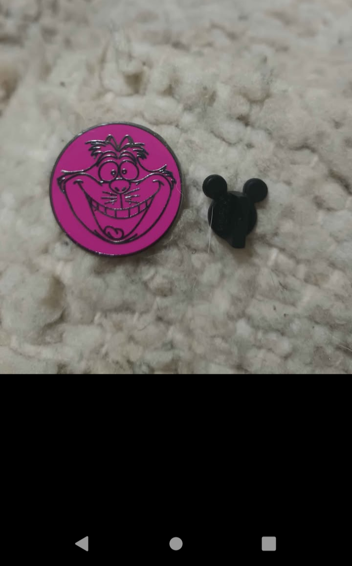 Pin Disney del Gato Cheshure de Alicia en el país de las maravillas con diseño divertido y colorido, perfecto para coleccionar o decorar ropa. En buen estado.