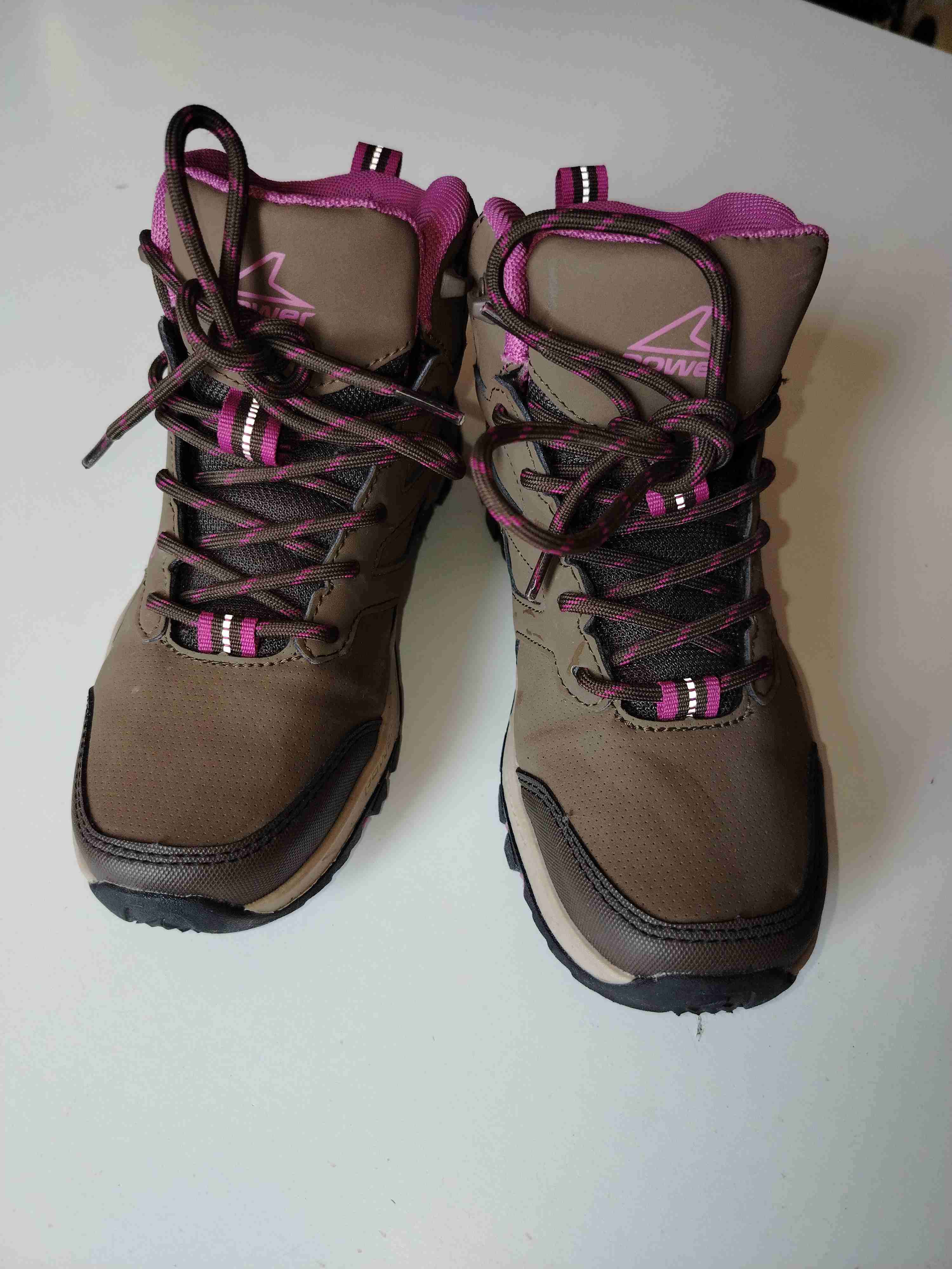 Robustas botas de montaña color marrón con detalles rosa. Perfectas para trekking. En buen estado. Talla:35