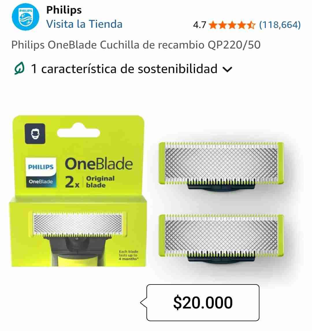 Pack de dos cuchillas para afeitadora Philips OneBlade. Ideal para reemplazo en uso diario. Buen estado.