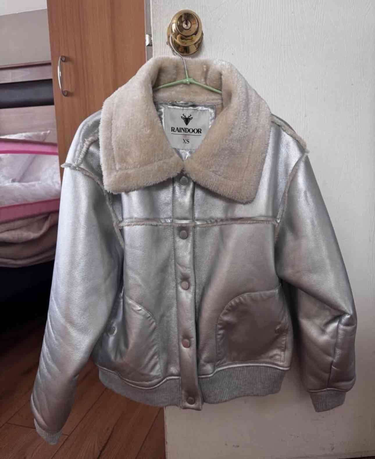 Chaqueta metálica con cuello de piel