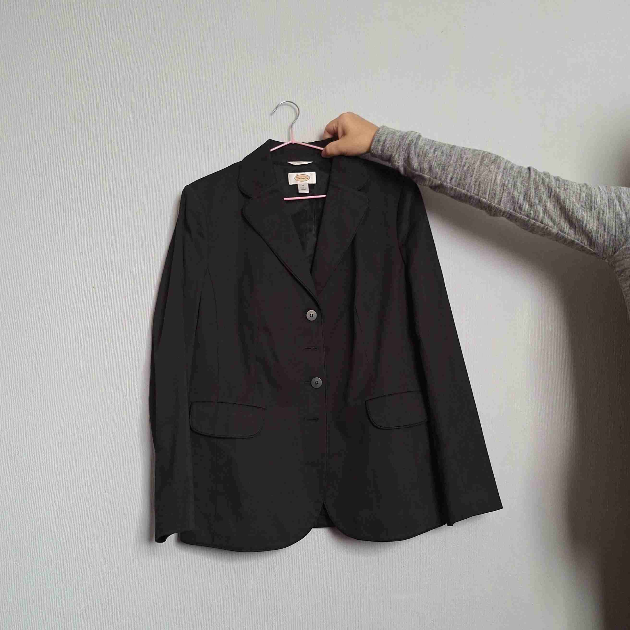 Blazer negro clásico, ideal para la oficina o eventos formales. Buen estado general, con algunos signos leves de uso. Talla L impecable