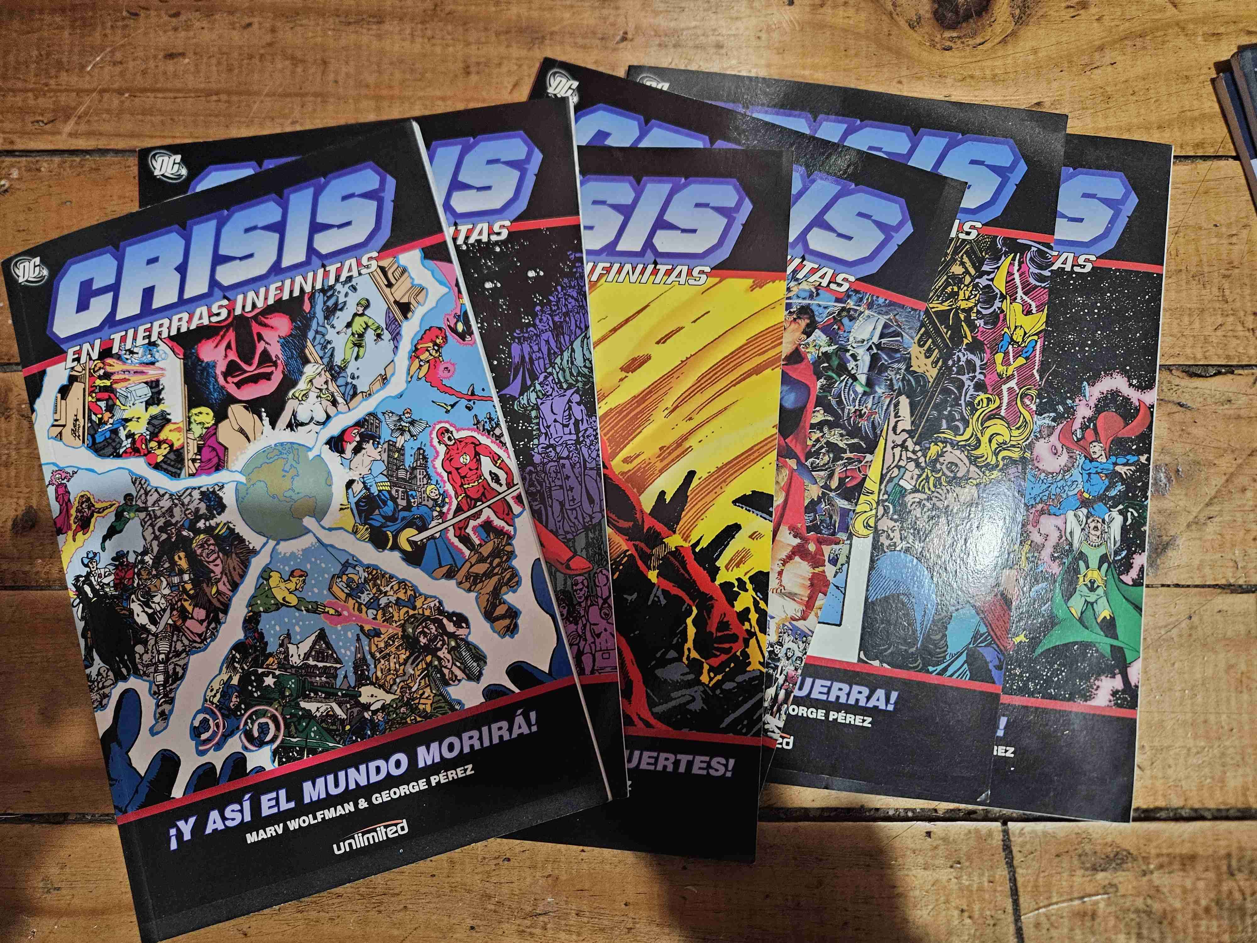 Conjunto de cómics de la serie 'Crisis en Tierras Infinitas'. En muy buen estado, ideales para coleccionistas. Edición Unlimited.