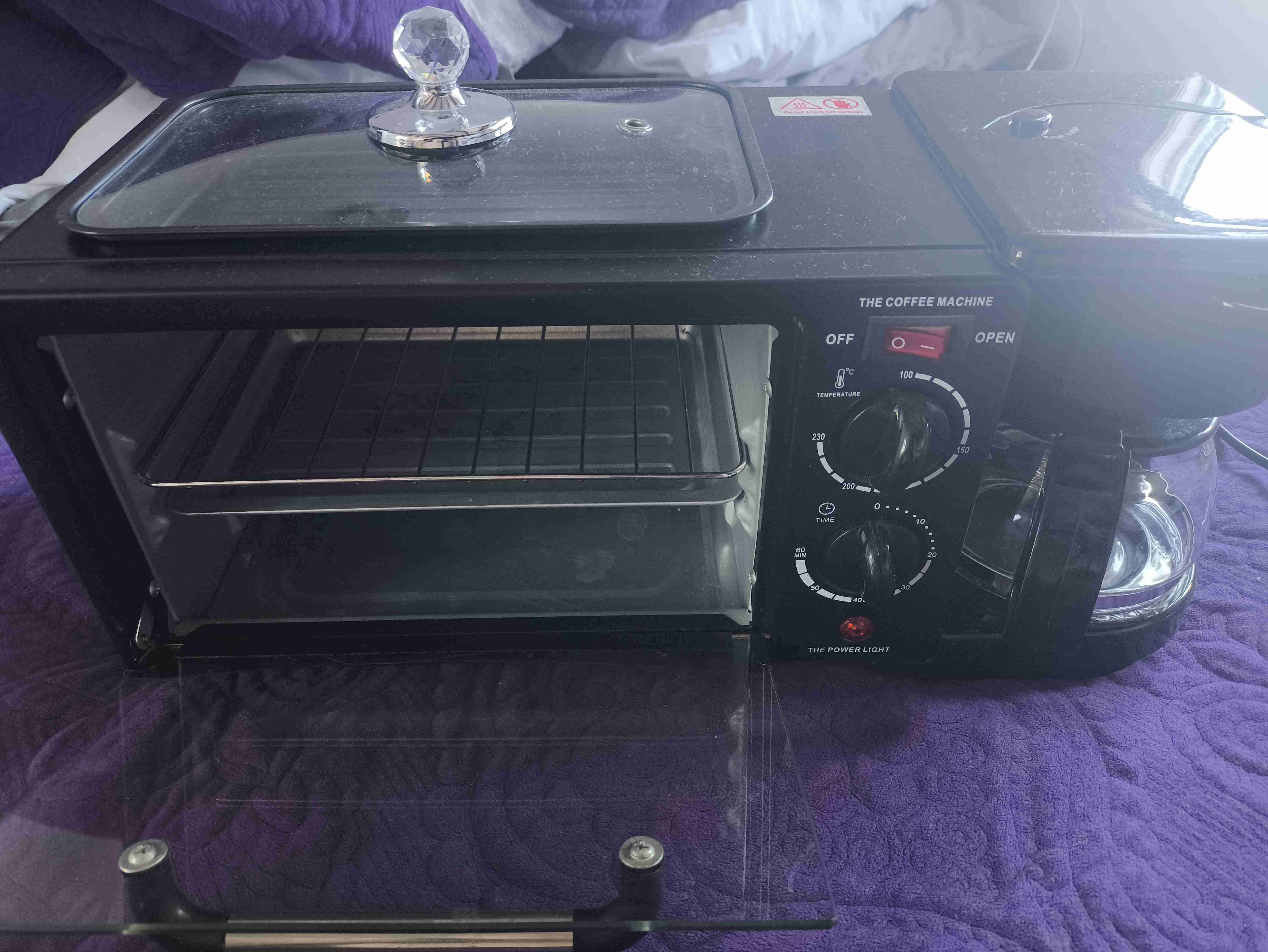 Cafetera combinada con horno tostador, ideal para espacios pequeños. Sin caja origina, en buen estado y lista para usar. Todo funciona como corresponde
