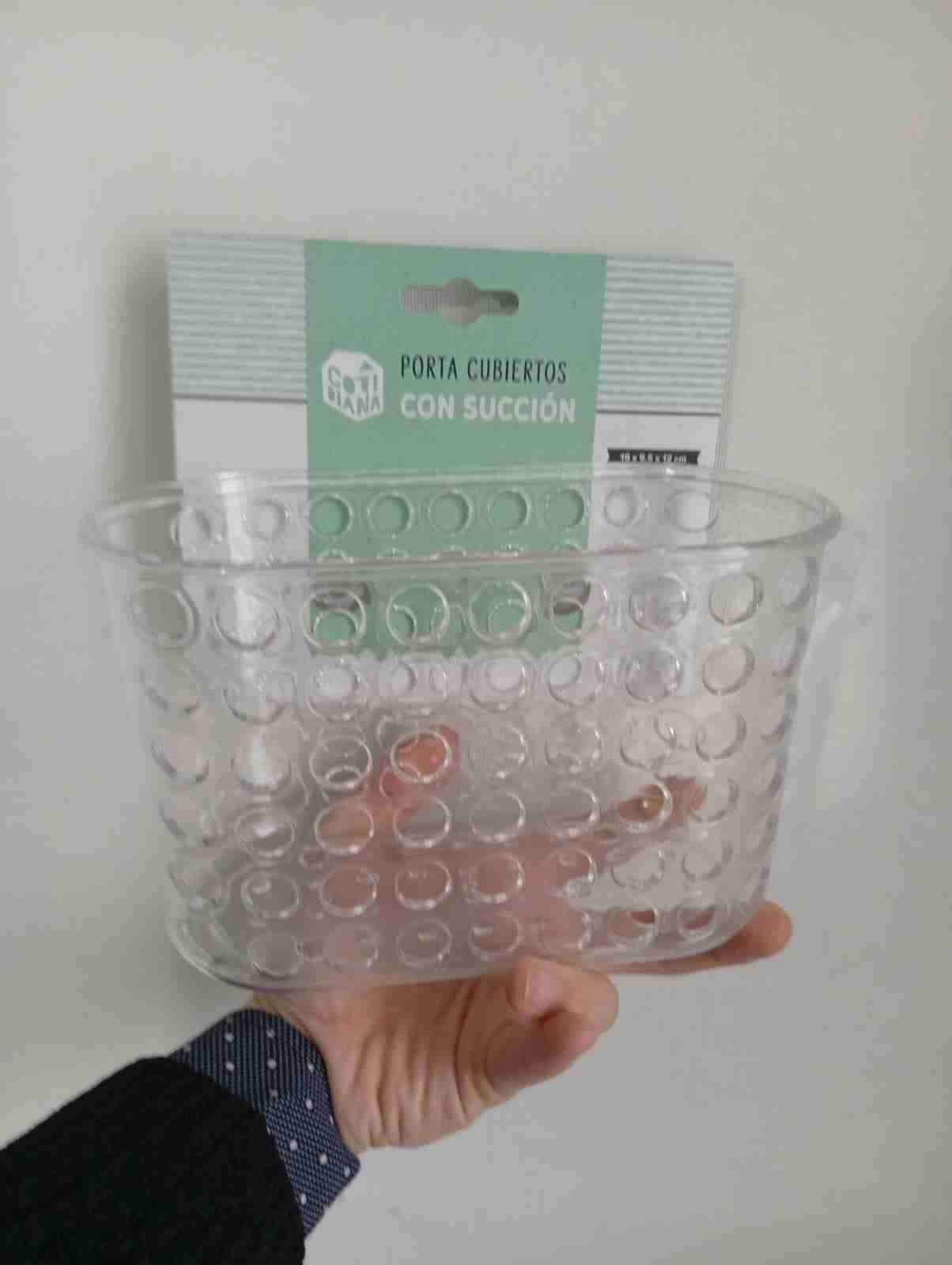 Práctico porta cubiertos transparente con ventosas para sujeción segura. Ideal para organizar tu cocina.