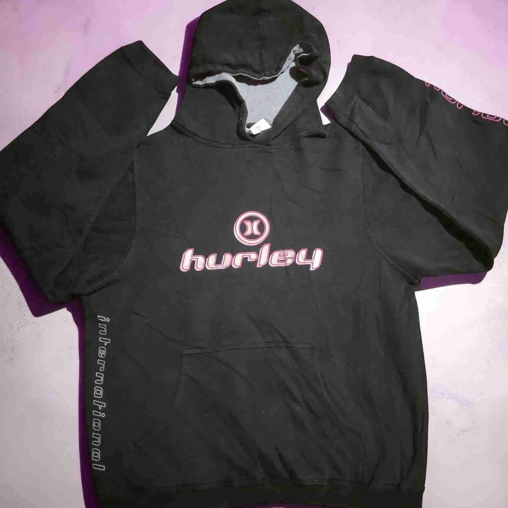Polerón negro con capucha, diseño Hurley en el pecho. Cómodo y casual, ideal para días fríos. ▶️Intragram :maisonlulu.vintage