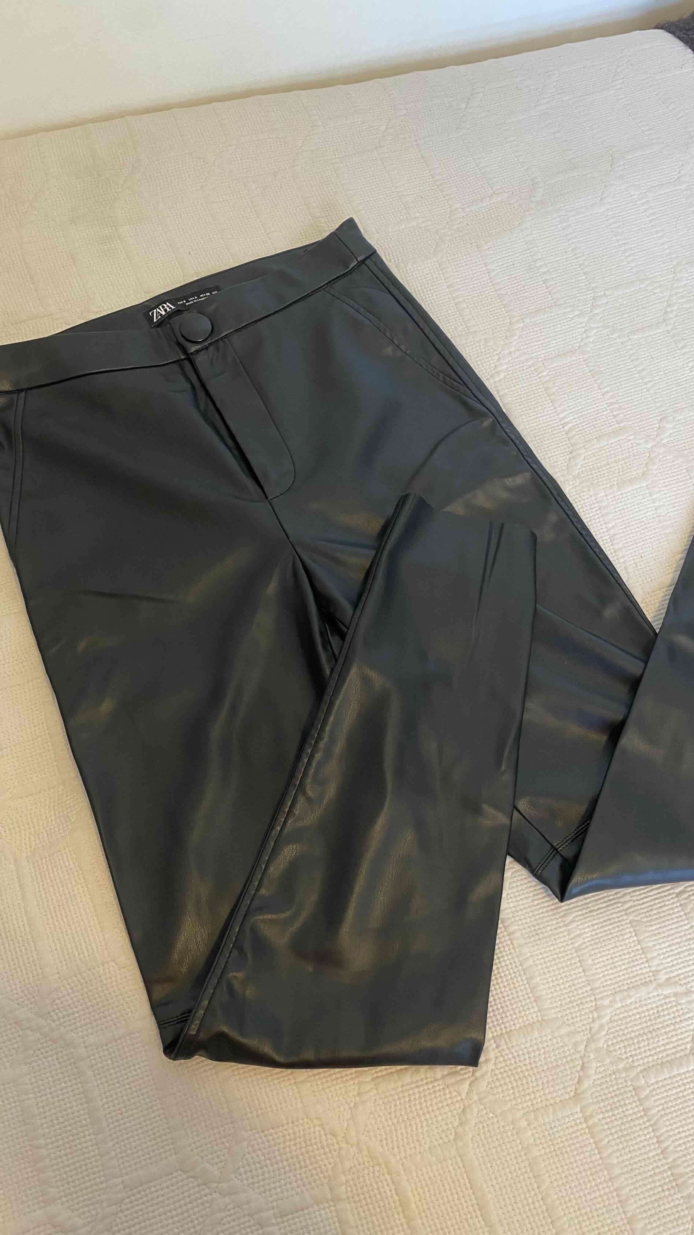 Pantalón de cuero negro, ideal para un look elegante y moderno. En buen estado, con nada de uso