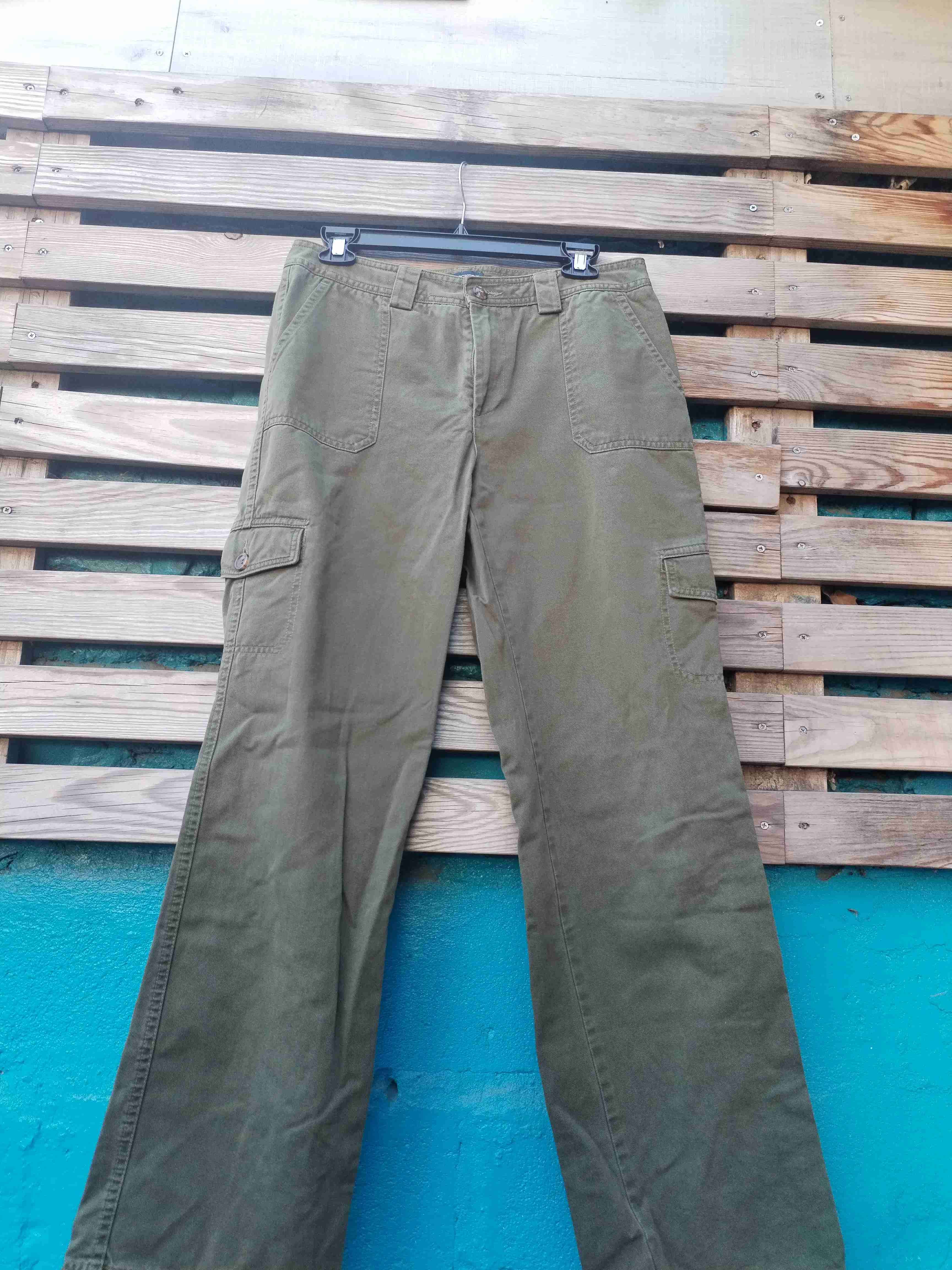Pantalones cargo de color verde oliva, ideales para un look casual. En buen estado, con bolsillos amplios y cómodos. Perfectos para uso diario.