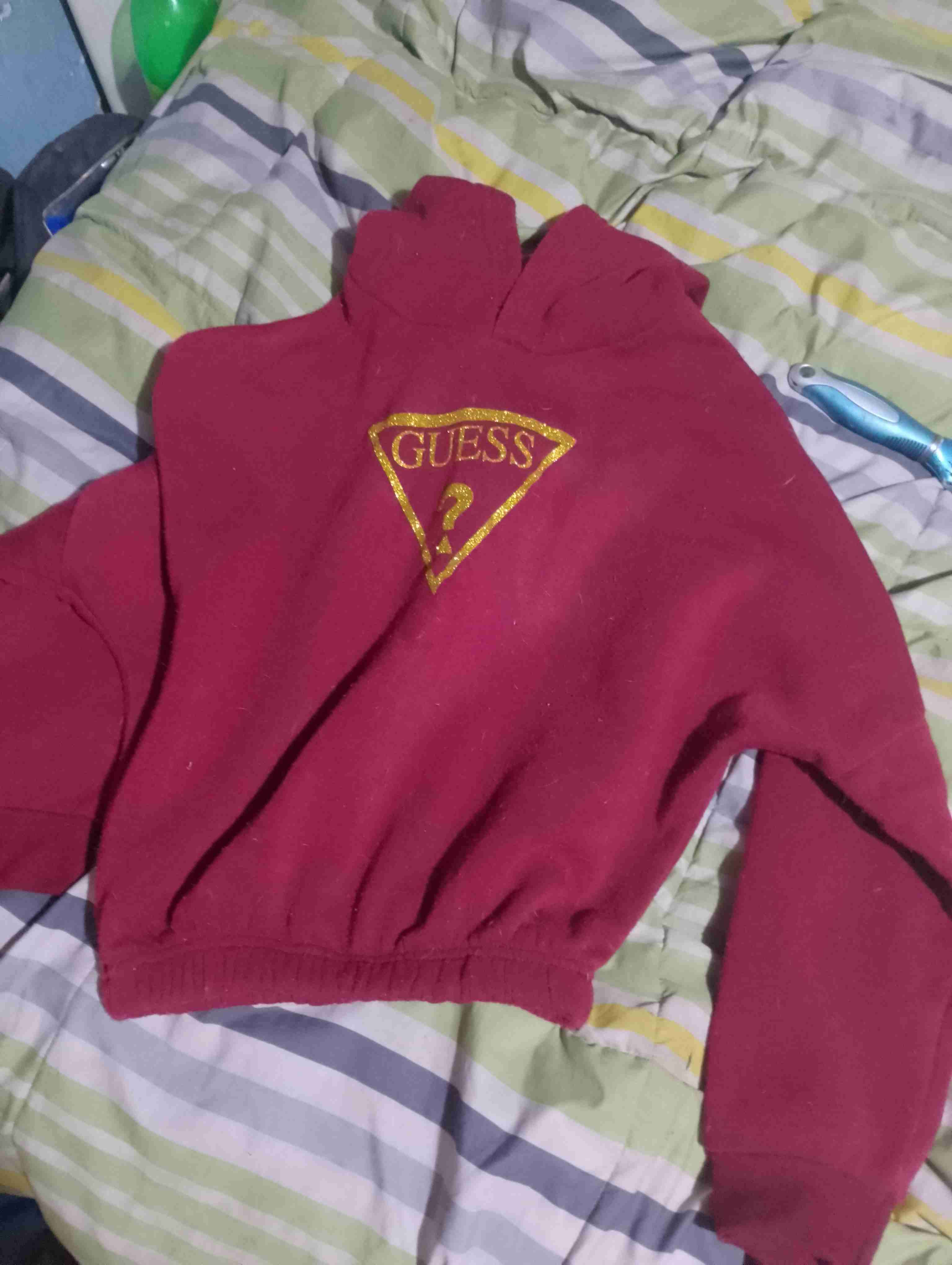 Polerón en buen estado, ideal para un look casual. Color bordó con logo dorado de Guess al frente.