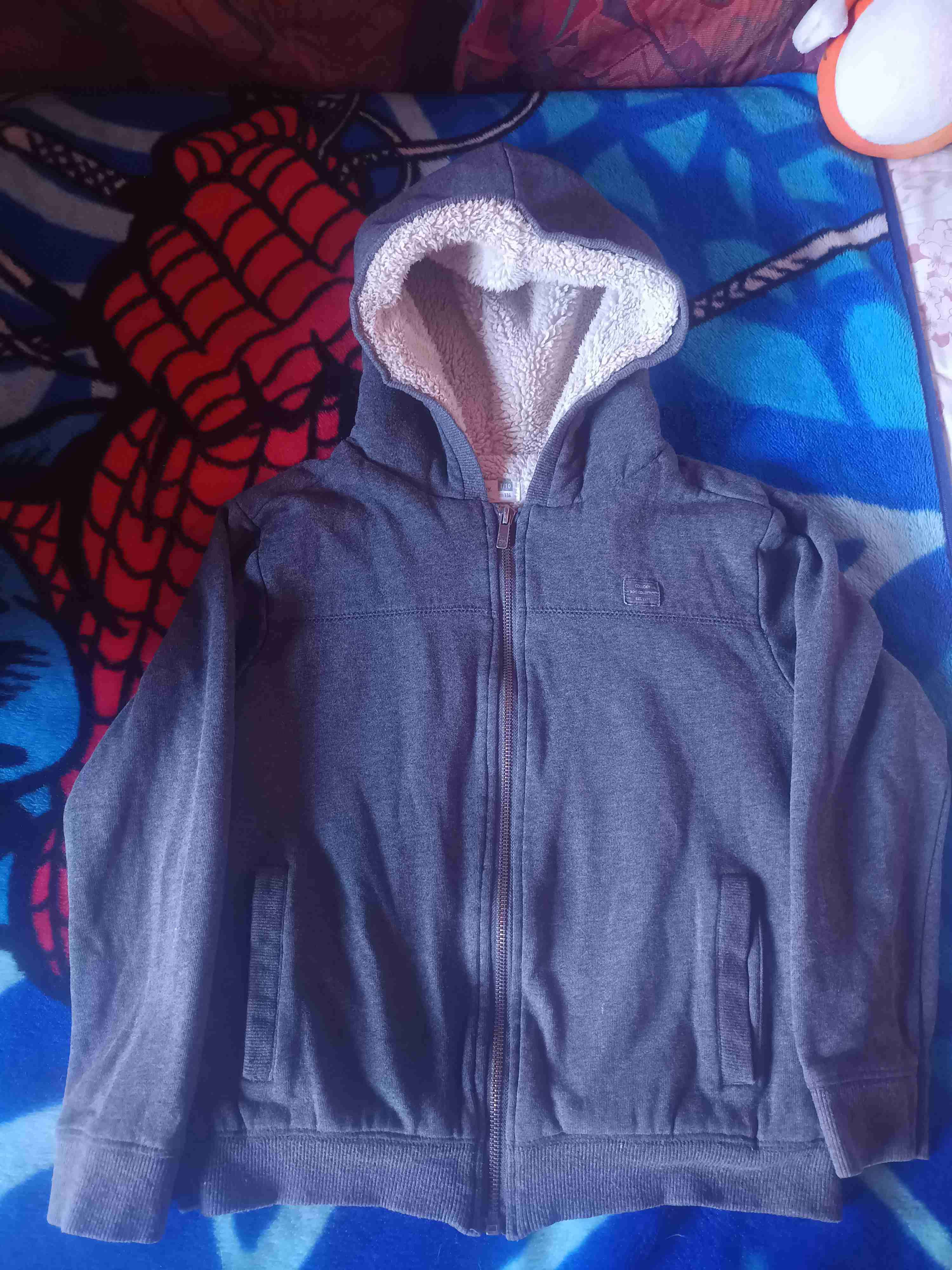 Polerón de color gris con interior forrado en corderito, exepto en mangas, ideal para el invierno. Buen estado, cómodo y abrigador. Casi nuevo y sin detalles. Marca Colloky talla 10