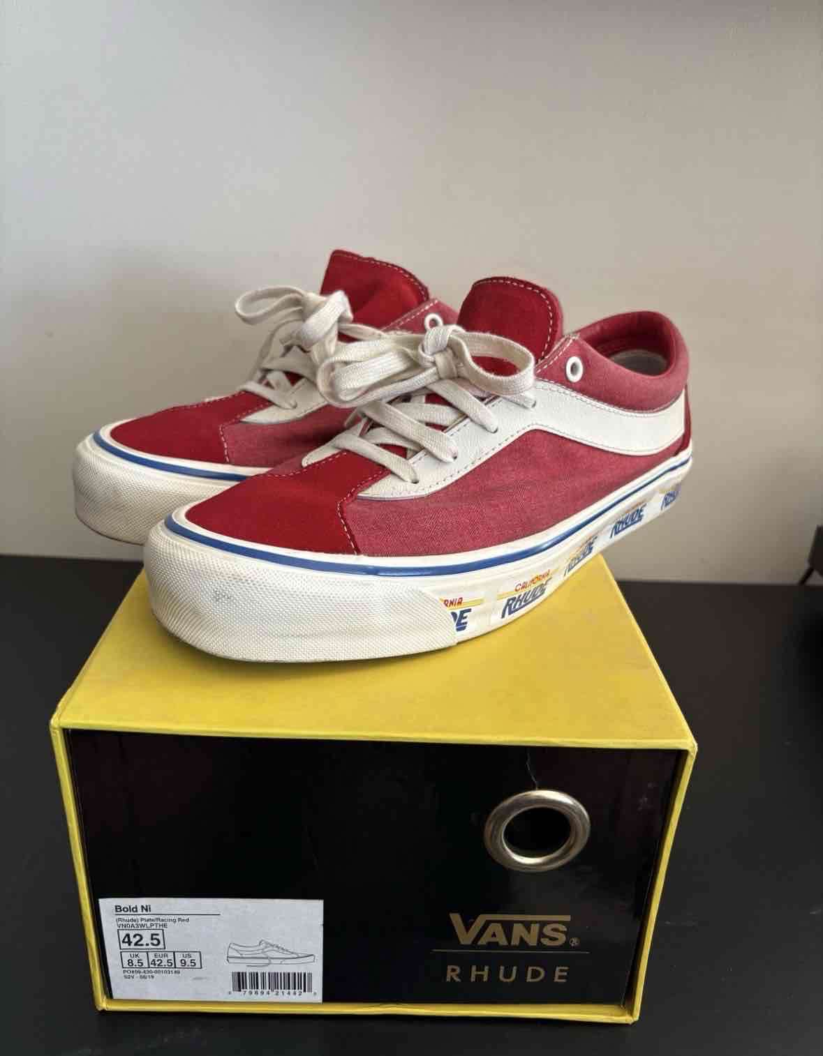Zapatillas Vans en colaboración con Rhude, en color rojo vibrante. En excelente estado, casi nuevas, perfectas para un look casual.