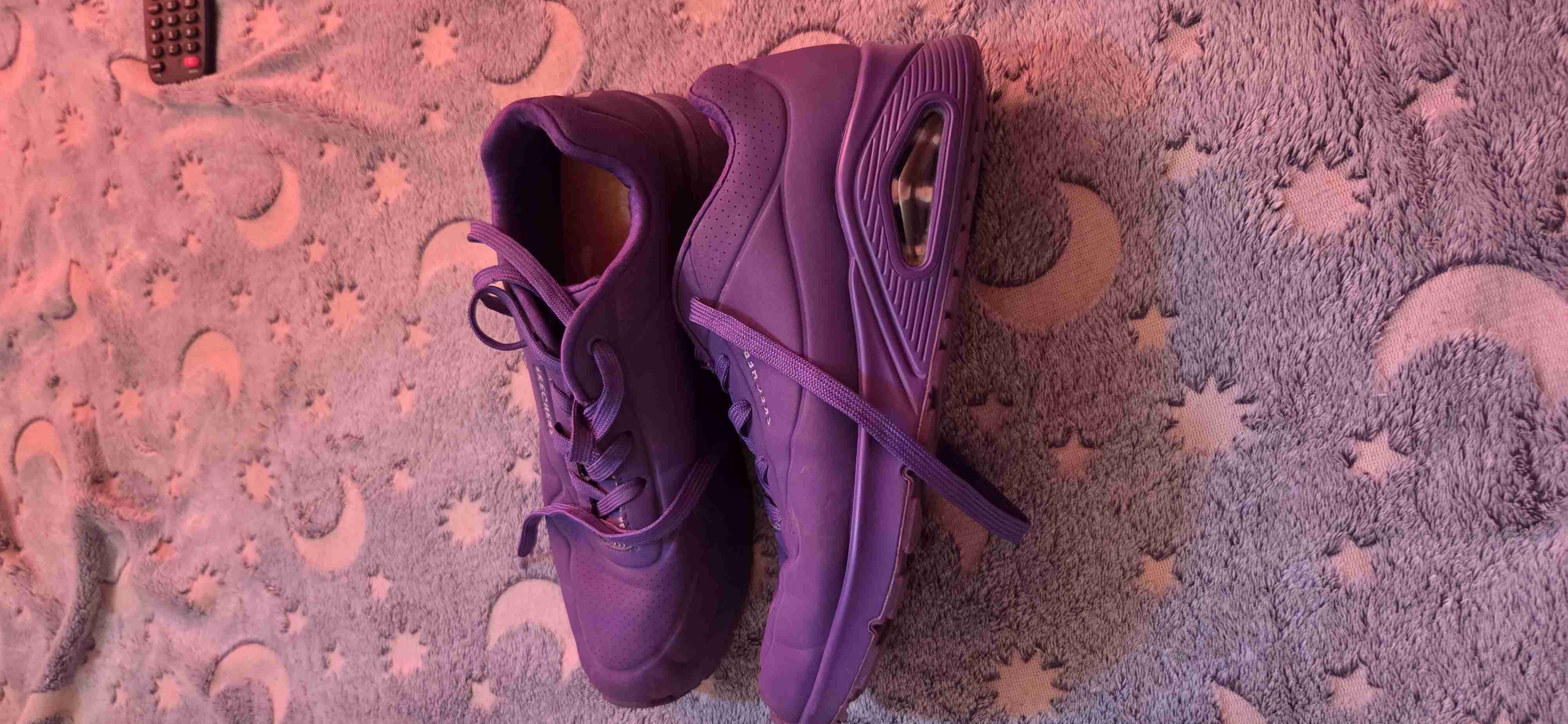 Zapatillas de deporte en color morado,y blancas, en buen estado. Ideales para actividades físicas o uso diario.