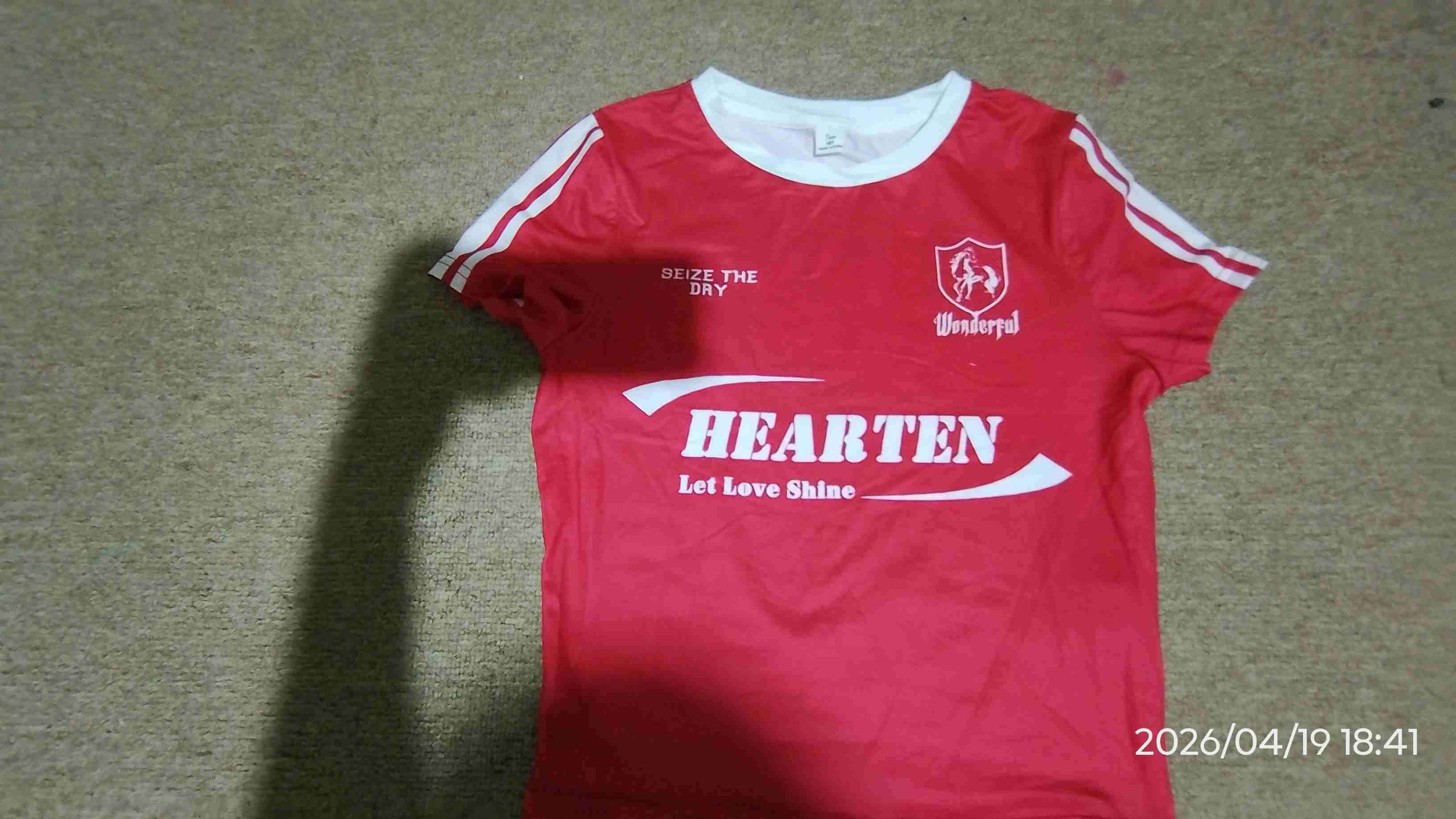 Polera deportiva roja con detalles en blanco. Ideal para actividades físicas y uso casual.