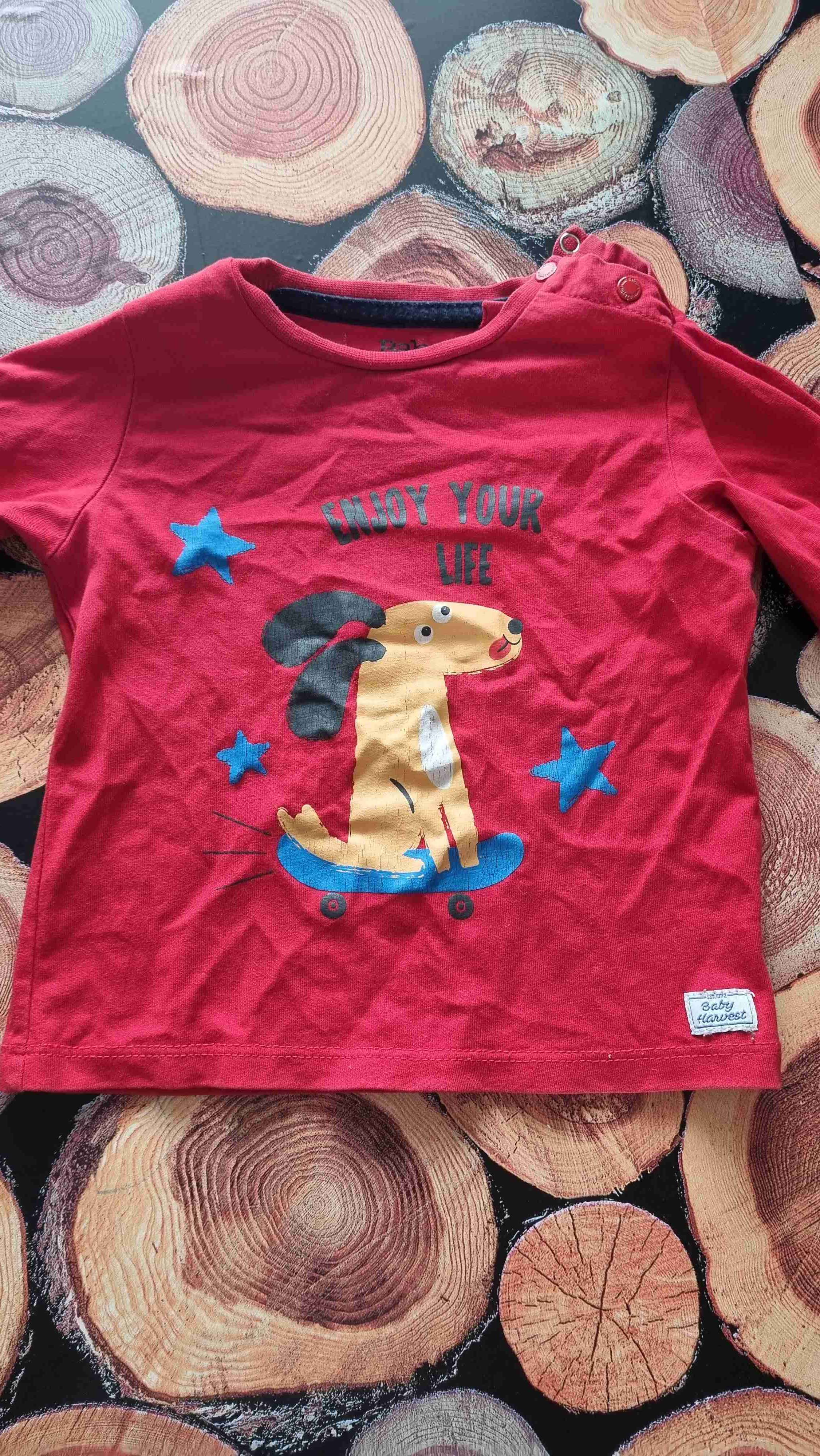 Polera roja para niños con divertido diseño de perro en skate. Ideal para el día a día.12 a 24 meses